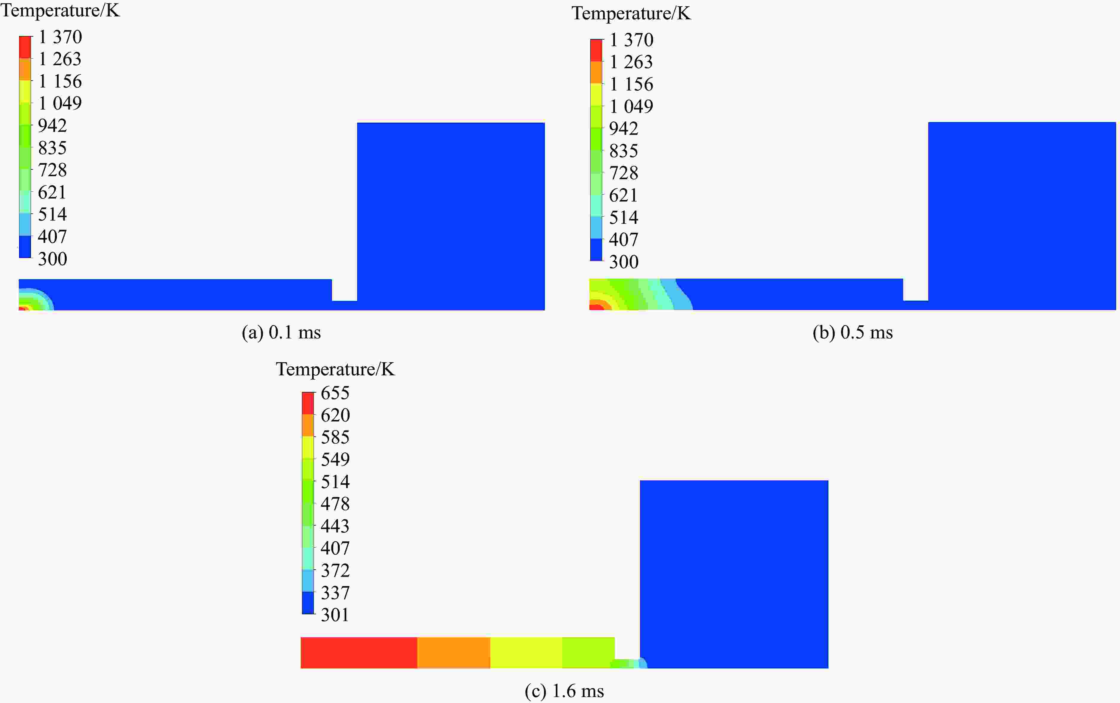图  17  不同时刻准密闭容器内的数值模拟温度云图