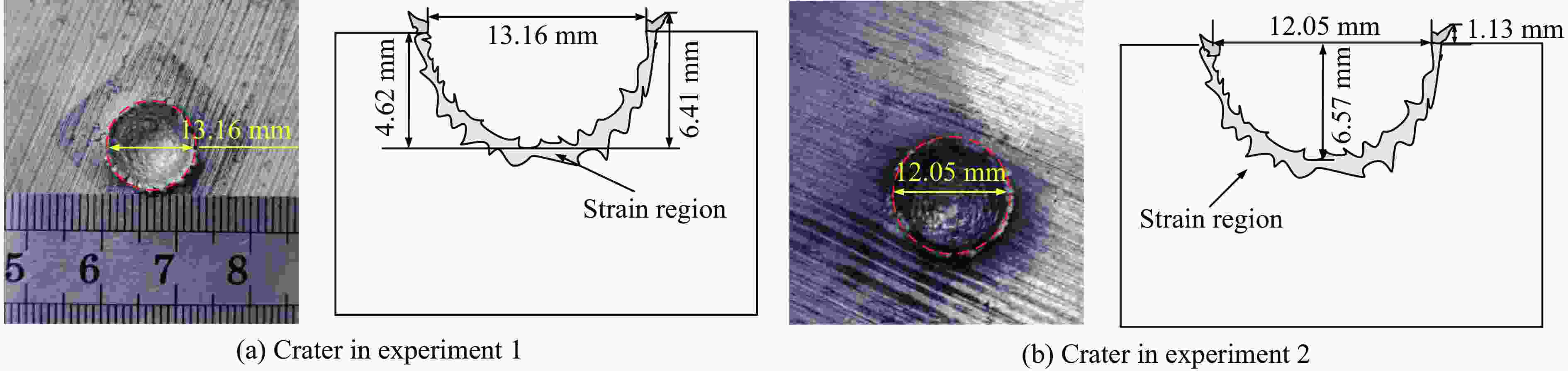 图  19  弹丸撞击靶板形成的弹坑及其剖面示意图