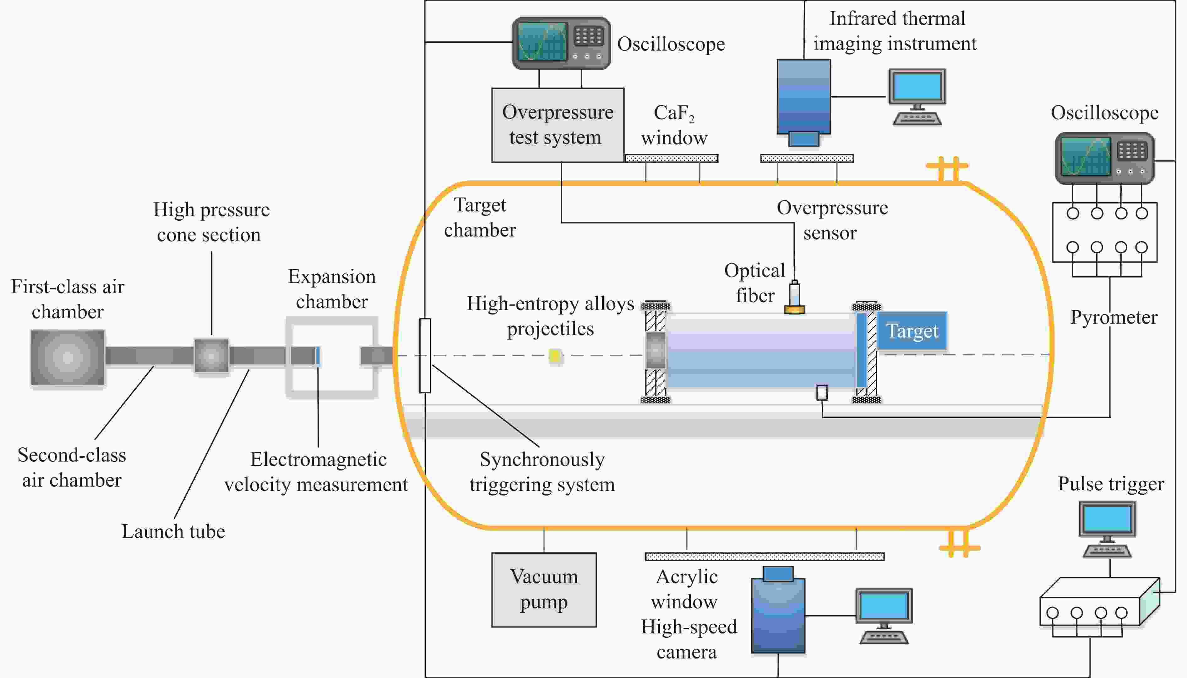 Figure  3.  Experimental loading and testing system of high-entropy alloys projectile impact reaction energy release
