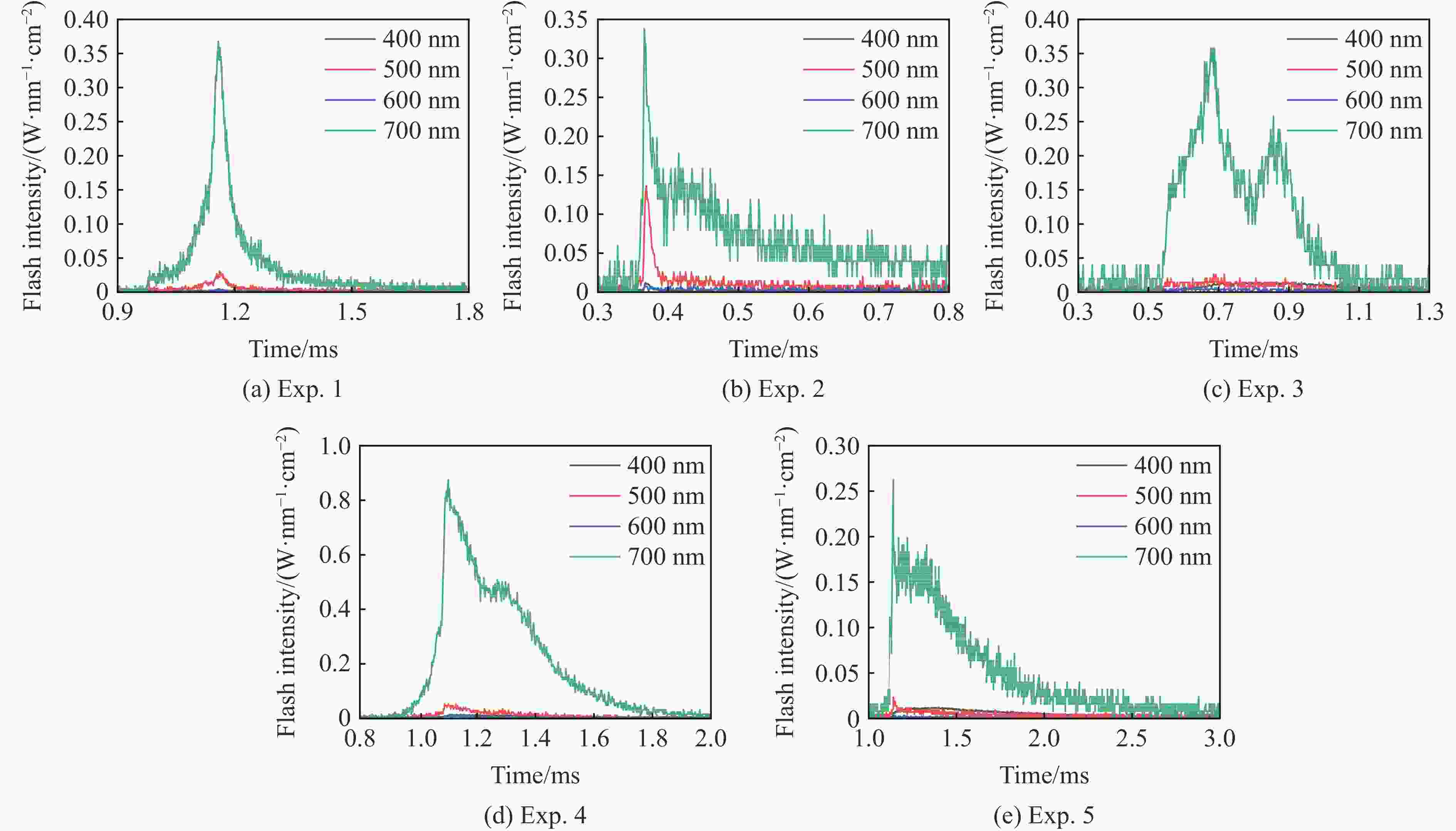 Figure  6.  Time-history curves of flash radiation intensity measured by fiber pyrometer in the experiments