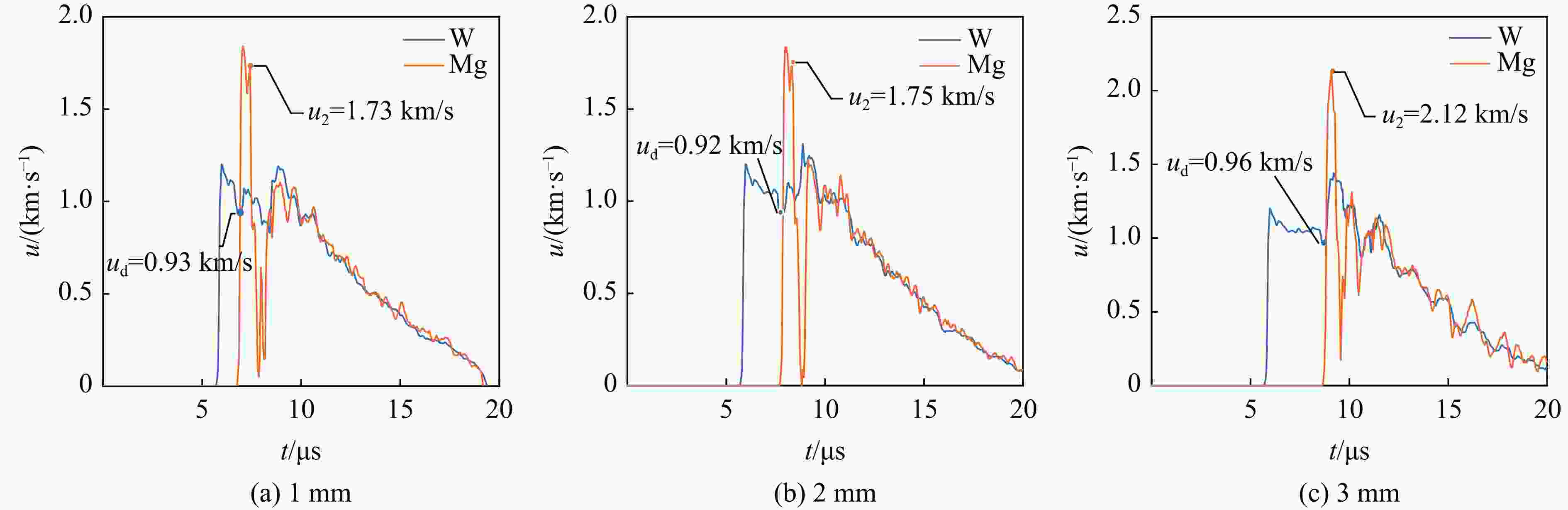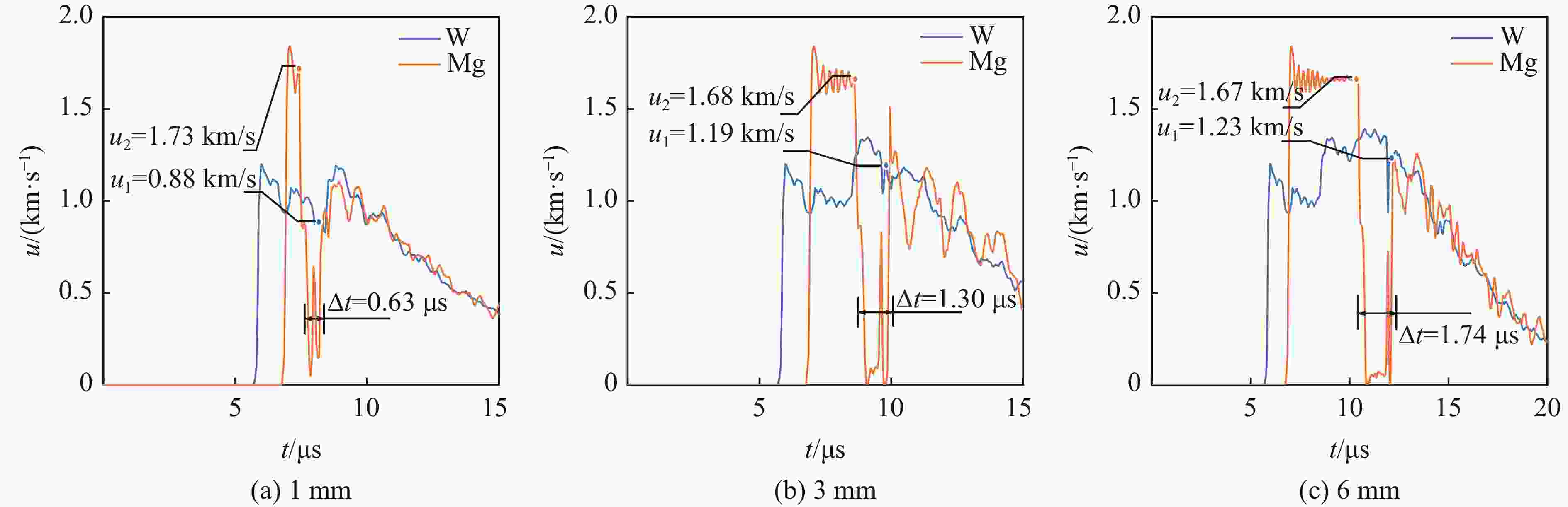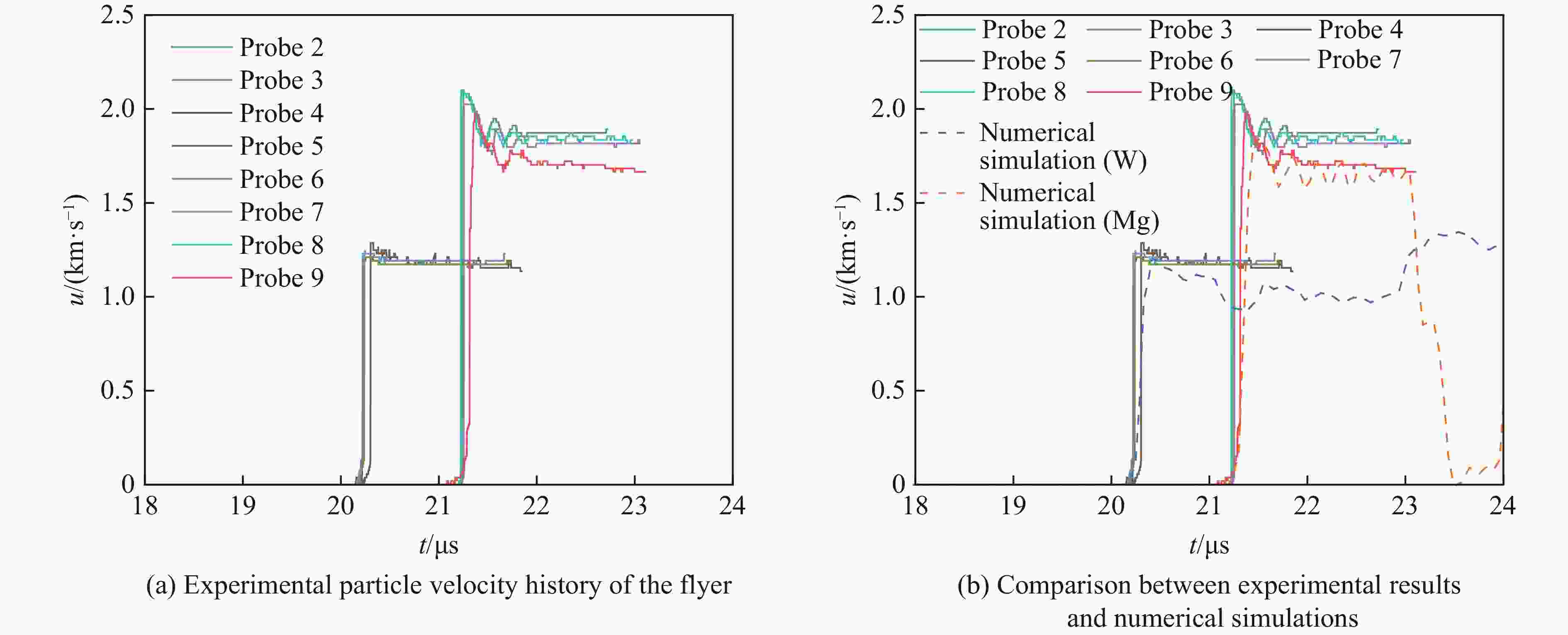 Material ρ0/(g·cm−3) Y0/GPa β G0/GPa A0/Pa B0 n Mg 1.78 0.19 1 100.0 16.5 1.03×10−2 5.907 0.350 W 18.30 1.87 7.7 145.0 1.03×10−3 1.764 0.300 Steel 7.90 0.34 43.0 77.0 2.26×10−3 5.280 0.283 表 6 验证实验装置参数