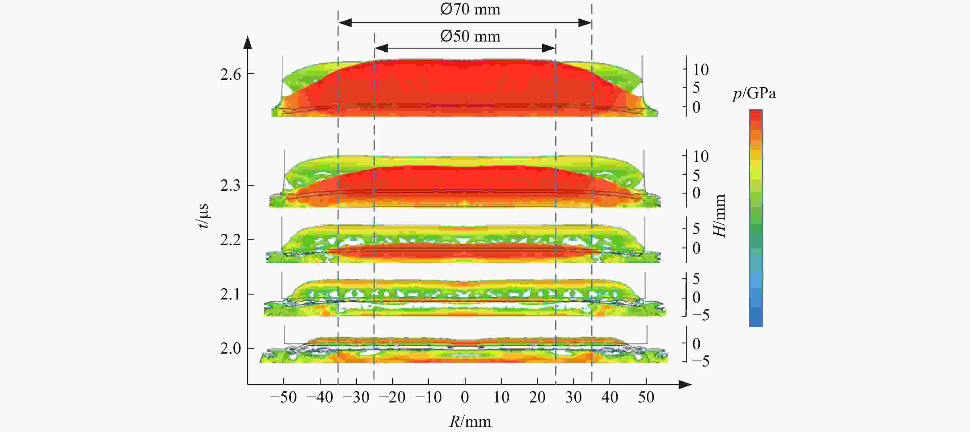 ρ0/(g·cm−3) A/GPa B/GPa R1 R2 ω 1.895 77 810 −5.031 11.3 1.13 0.909 38 表 3 材料的Grüneisen状态方程参数