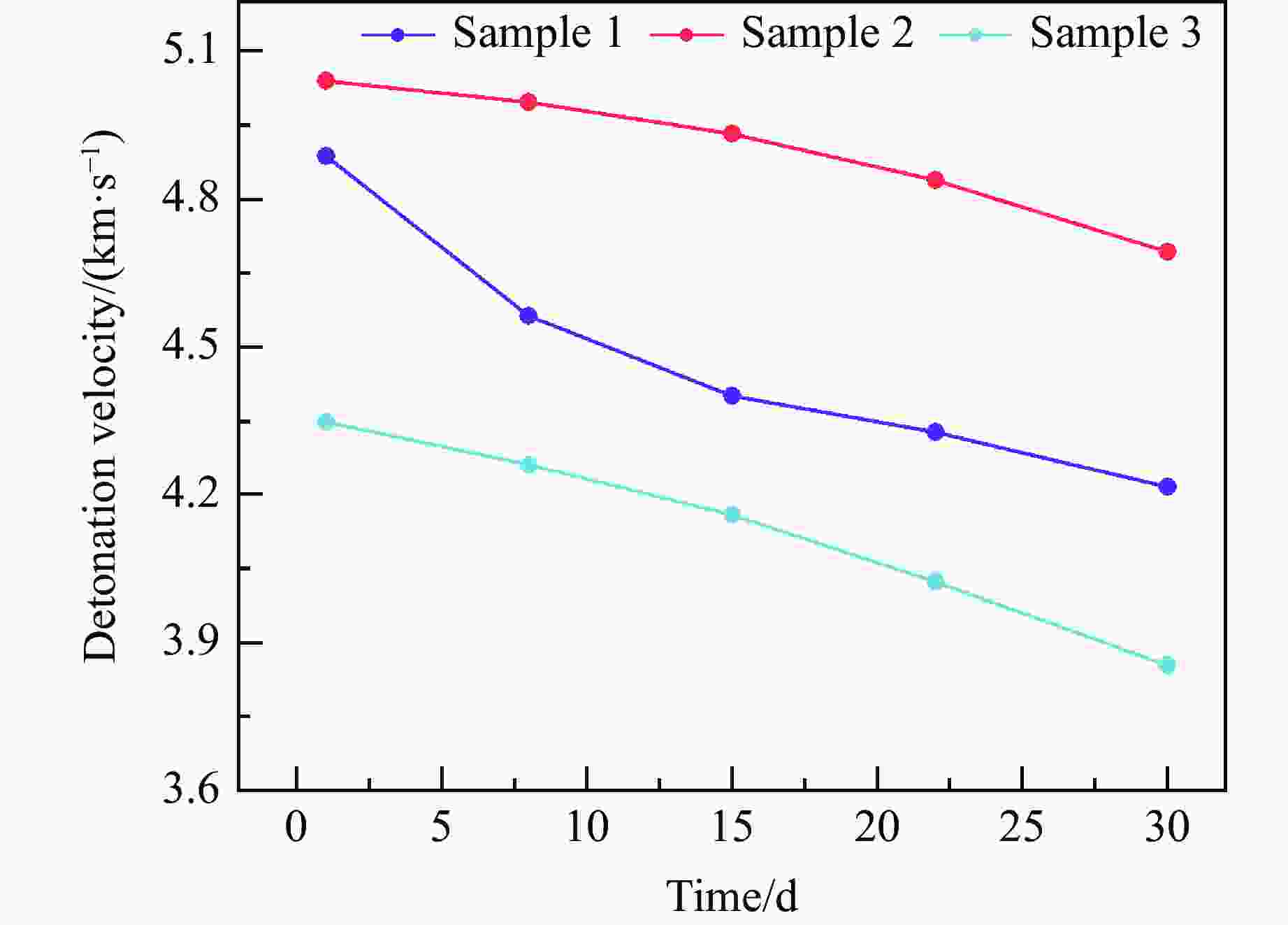摘要: 为研究高原环境对不同敏化方式乳化炸药的影响程度,选取3种典型的敏化材料制备乳化炸药样品,模拟并对比分析了高原环境(−20 ℃、约0.05 MPa)储存后乳化炸药的微观结构和爆轰性能变化。结果表明:低温低压下的高原环境主要从加剧破坏乳化体系稳定性与热点分布两方面影响炸药的性能,在该环境下化学敏化炸药相较于物理敏化炸药的析晶程度较低,但热点变化较大,导致爆轰性能下降;物理敏化中,膨胀珍珠岩炸药晶体的生长方式更加复杂,因此更易破乳析晶,储存稳定性与爆轰性能均有明显降低;相对而言,树脂微球炸药在低温低压下的析晶程度与爆轰性能均较稳定。综合上述结果,树脂微球乳化炸药具有更好的高原适应性。Abstract: In order to study the influence of plateau environment on emulsion explosive sensitized by different methods, three typical sensitization materials were selected to prepare emulsion explosive samples. The changes in microstructure and detonation performance of samples stored in simulated plateau environment (−20 ℃, about 0.05 MPa) were analyzed. The results showed that the low temperature and low pressure of plateau environment mainly affects the performance of explosives from the aspects of aggravating the stability of emulsion system and the distribution of hot spots. In the plateau environment, the crystallization degree of chemically sensitized explosives is lower than that of physically sensitized explosives but the hot spots change greatly, leading to a decrease in detonation performance. In the physical sensitization, the growth mode of expanded perlite explosive crystal is more complex, so it is easier to demulsify and crystallize, and the storage stability and detonation performance are significantly reduced. The degree of crystallization and detonation performance of resin microsphere explosive are relatively stable under low temperature and low pressure. In general, resin microspheres emulsion explosive has better adaptability to plateau.
