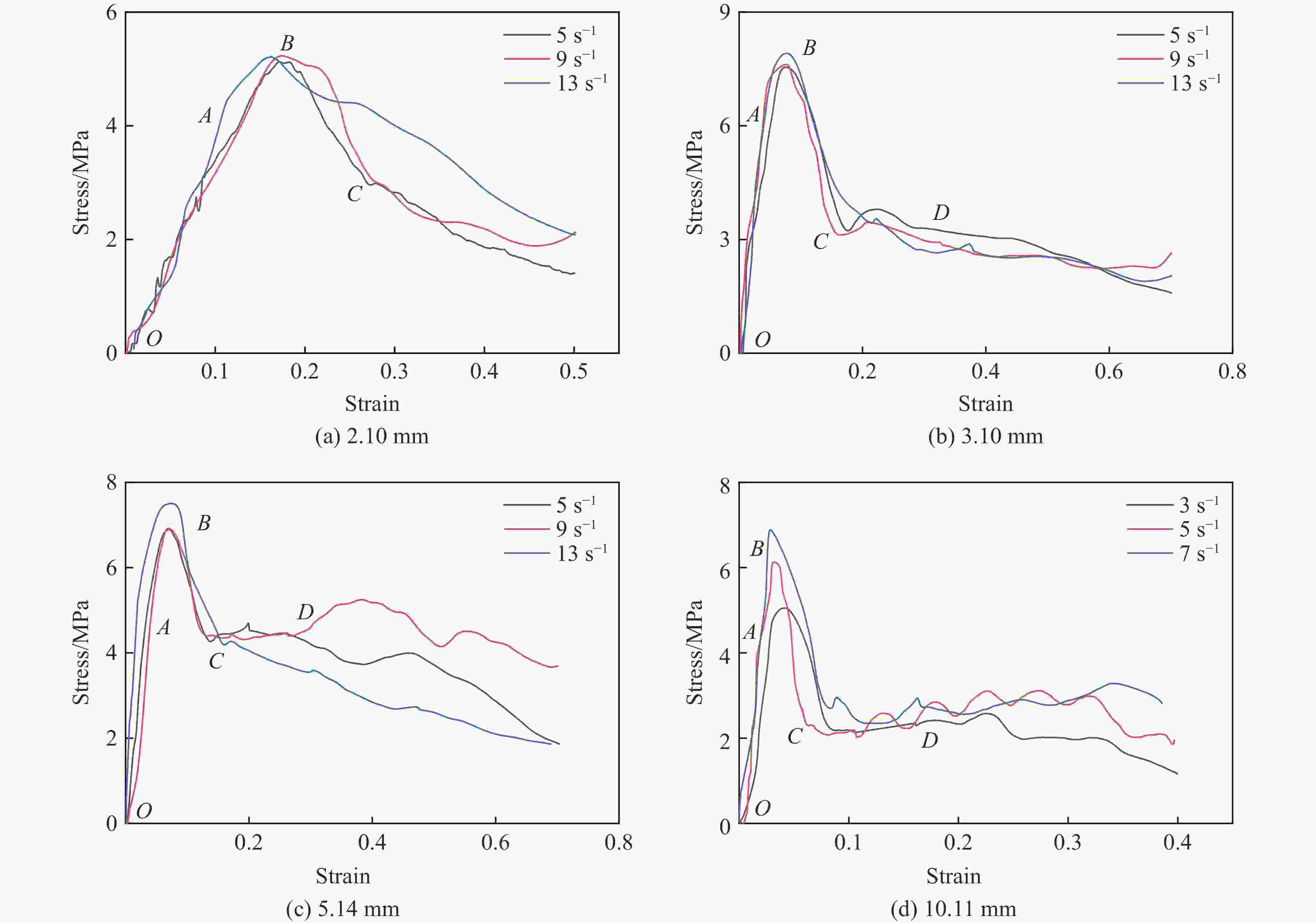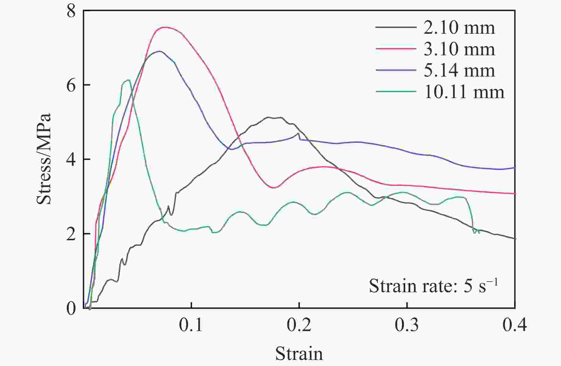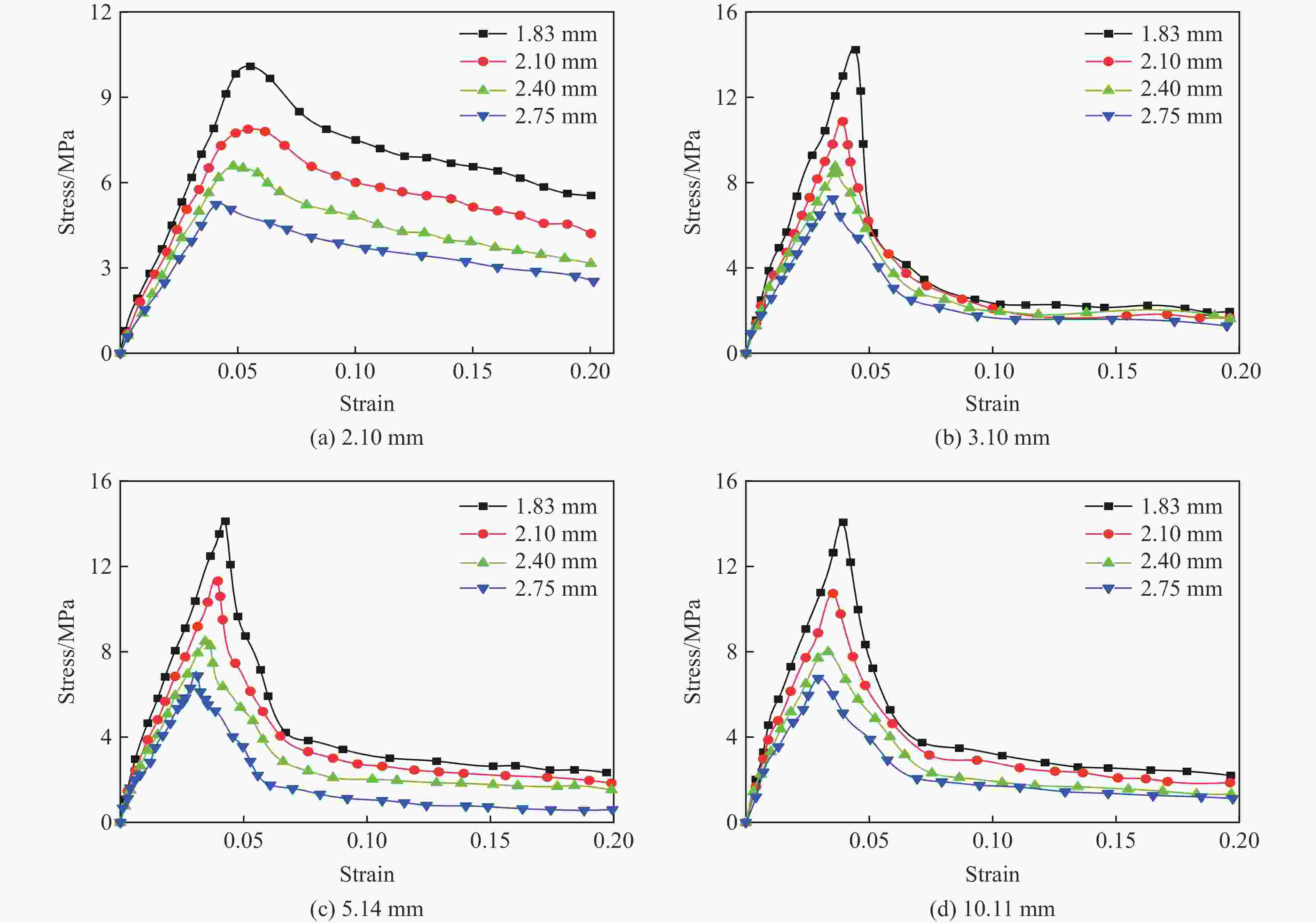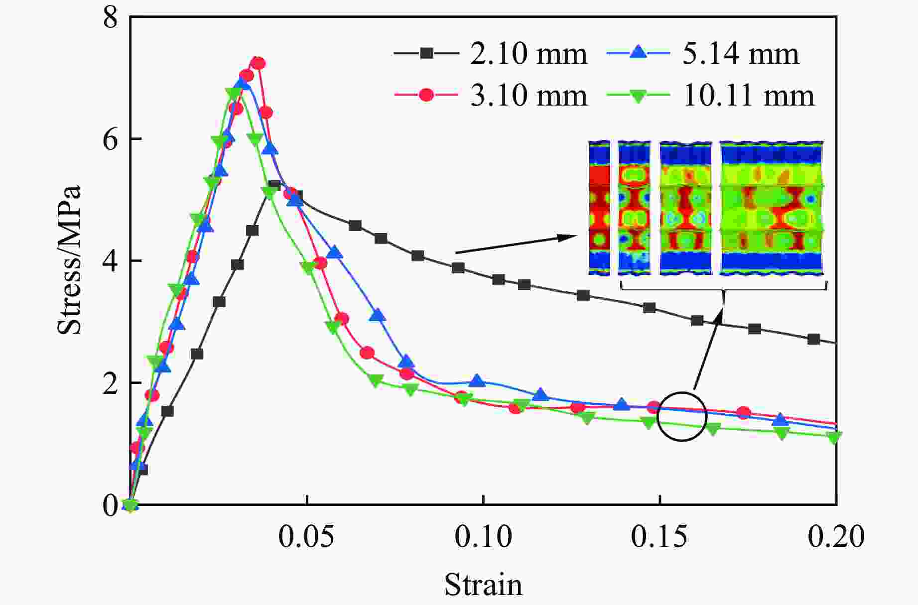 Sample size/mm Strain rate/s−1 The peak state Stress-drop/MPa Stress/MPa Strain 2.10 5 5.11 0.174 9 5.21 0.173 13 5.22 0.162 3.10 5 7.54 0.077 4.30 9 7.60 0.076 4.48 13 7.92 0.076 4.49 5.14 5 6.90 0.070 2.53 9 6.92 0.069 2.54 13 7.49 0.069 3.29 10.11 3 5.04 0.040 2.84 5 6.13 0.039 3.83 7 6.88 0.028 4.18 表 2 纸蜂窝基体的材料参数
