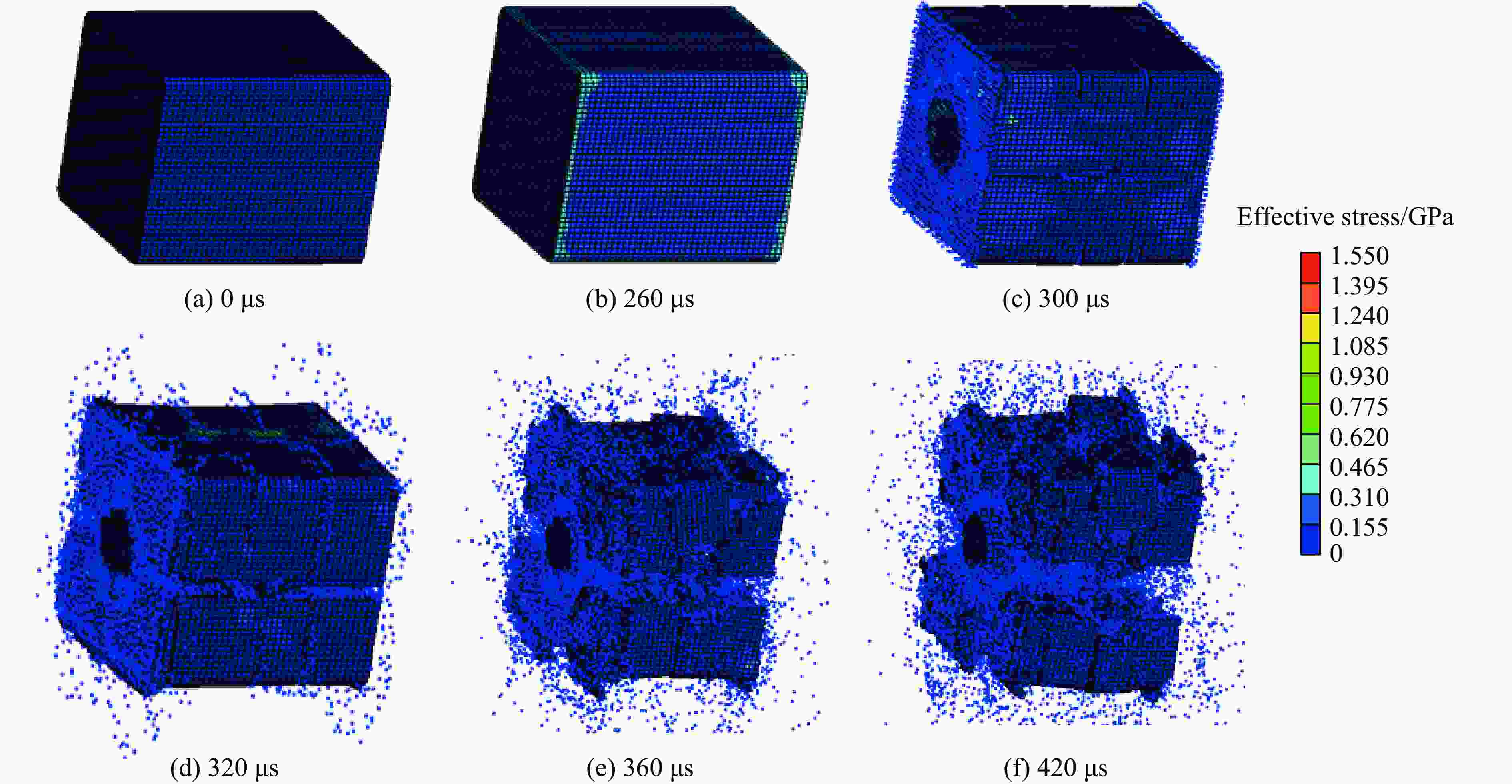 ρ/(kg∙m−3) G/GPa K1/GPa K2/GPa K3/GPa T/GPa σHEL/GPa pHEL/GPa 2468 29.3 44.4 −145 244 0.07 7.5 3.52 A B C M N D1 D2 Sfmax 3.10 0.36 0.00256 0.83 1.51 0.005 0.85 0.2 表 7 数值模拟和试验获得的不同应变率下的单轴压缩强度