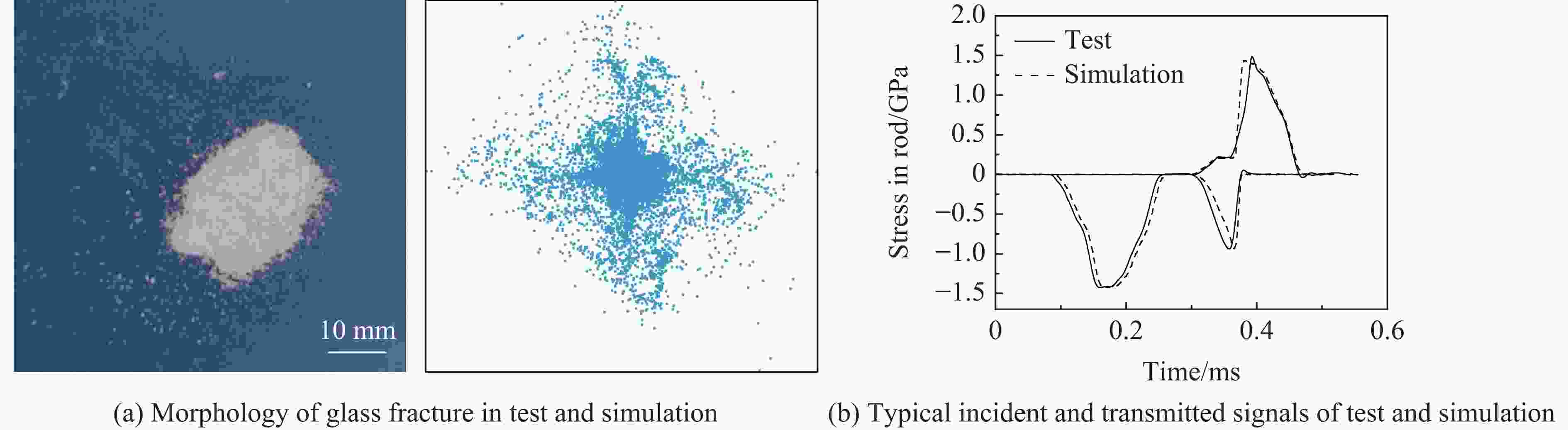 摘要: 防弹玻璃具有良好的抗冲击性能,能够抵御枪弹、爆炸碎片以及其他高速飞行物体的攻击性威胁,广泛应用于安全防护领域。为探究防弹玻璃的无机玻璃层在冲击加载下的动态力学性能及本构关系,首先,采用电子万能试验机和分离式霍普金森压杆(split Hopkinson pressure bar, SHPB)试验装置,获得了不同应变率下材料的拉伸和压缩力学性能,结果表明,无机玻璃具有明显的应变率效应,材料强度随应变率的升高而增大。其次,借鉴土力学三轴围压试验,设计了适用于本研究的高强围压套筒,测试了完全损伤条件下玻璃颗粒的力学性能,发现其强度明显低于完整状态下无机玻璃的强度。最后,结合试验数据构建了含损伤无机玻璃的JH2本构模型,采用非线性有限元软件 LS-DYNA 模拟了材料在SHPB加载下的压缩过程,通过对比试验结果与模拟结果,验证了本构模型的有效性。Abstract: Bulletproof glass exhibits excellent impact resistance and protective capabilities against bullets, explosive fragments, high-speed projectiles, and various other aggressive threats, making it extensively utilized in the field of safety and security. To investigate the dynamic mechanical properties and constitutive relation of the inorganic glass layers in bulletproof glass under impact loading, we firstly employed an electronic universal testing machine and a split Hopkinson pressure bar (SHPB) test setup to obtain the tensile and compressive mechanical properties of the material at different strain rates. Results reveal a noticeable strain rate effect that the material’s strength increases with the strain rate. Secondly, drawing on the experience of geotechnical triaxial compression tests, we designed a high-strength confinement sleeve suitable for assessing the mechanical properties of glass particles under conditions of complete damage. Results show a significantly lower strength compared to that of the intact state of inorganic glass. Finally, by integrating test data, an JH2 constitutive model for inorganic glass with damage was established. By using the non-linear finite element software LS-DYNA, the SHPB test process was simulated. The effectiveness of the constitutive model was verified by comparing test and simulated results.