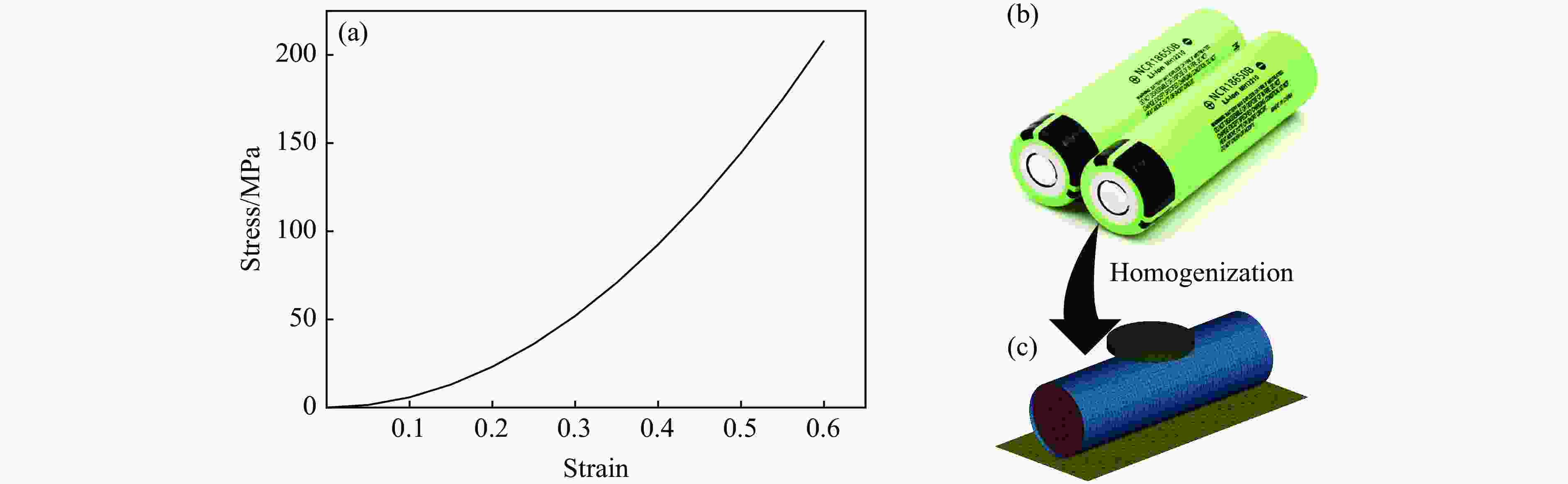 摘要: 锂离子电池在受到挤压、冲击载荷时会发生内部短路而引发热失控,因此,研究电池失效影响因素对电池结构耐撞性设计具有重要意义。以圆柱形锂离子电池为研究对象,利用自制的平面压缩和局部压痕实验系统,研究不同挤压/冲击工况下锂离子电池的力-电-热响应,并与有限元模拟结果进行对比分析,结果表明,实验与有限元模拟结果具有较好的一致性。基于显式非线性有限元方法,研究了加载速度、压头形状和压头直径对锂离子电池失效行为和力学响应的影响。研究表明:局部压痕相较于平面压缩更容易导致锂离子电池失效;随着压头直径的减小,电池的峰值力显著降低,失效位移相应减小;失效位移随着冲击速度的增加而增大,但当冲击速度超过15 m/s时,失效位移开始减小。研究结果将对锂离子电池的耐撞性多目标优化设计和安全性评估提供一定的指导。Abstract: Lithium-ion batteries (LIBs) will cause internal short-circuits and even induce thermal runaway when they are subjected to compression and impact loadings. It is of great significance to explore the influencing factors of battery failure under different mechanical abuses for the crashworthiness design of the cells. In this paper, taking cylindrical LIBs as the research object, the force-electrical-thermal responses of the cells under different compression/impact conditions were studied by using a self-made plane compression and local indentation experimental system. The experimental results were compared with the corresponding finite element (FE) ones, and there was in good agreement with each other. Based on the explicit nonlinear FE method, the effects of loading velocity, indenter shape, and indenter diameter on the failure behaviors and mechanical responses of LIBs were also discussed. It is shown that localized indentation is more likely to induce the failure of the cells compared with plane compression. The peak force significantly decreases with the decrease of the indenter diameter, and the failure displacement also decreases correspondingly. It is noted that the failure displacement increases with the increase of the impact velocity, however, the failure displacement will decrease gradually when the impact velocity is more than 15 m/s. These results will provide some guidance for the multi-objective optimal design and safety assessment of LIBs.