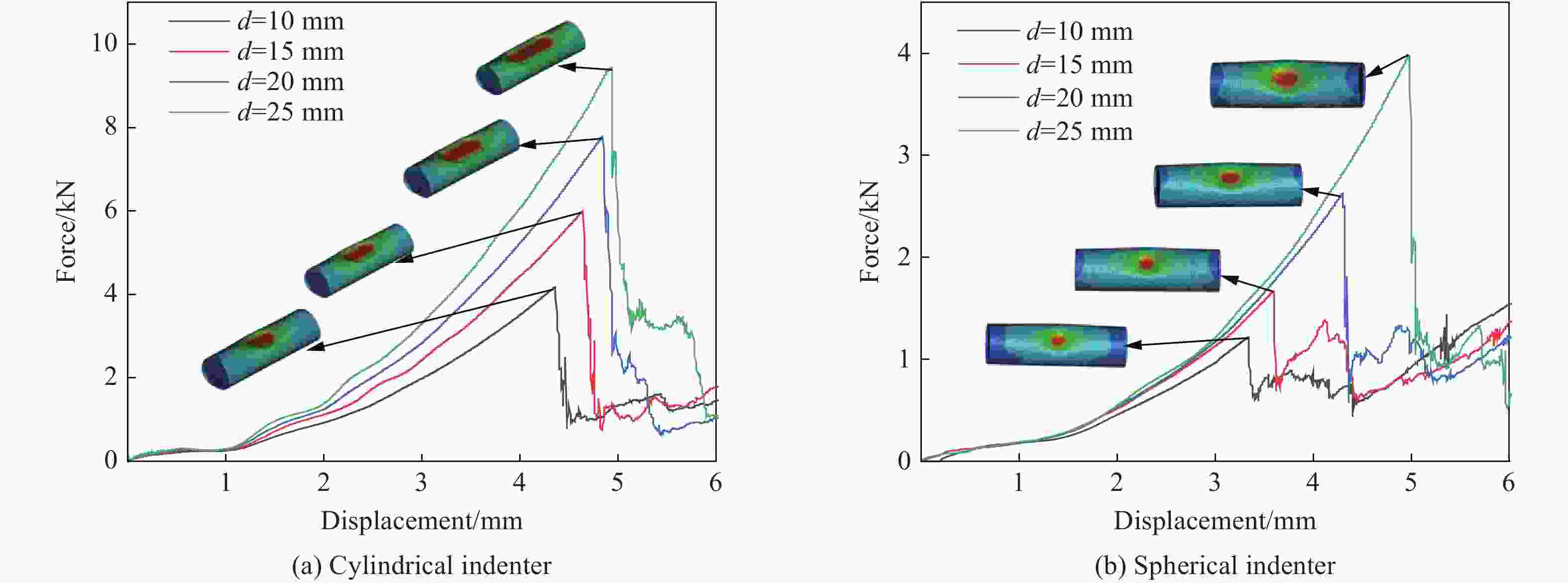 Component Material type Poisson’s ratio Density/(kg·m−3) Elasticity modulus/GPa Indenter MAT_20 0.30 7800 210 Shell MAT_24 0.30 2700 69 Inner core MAT_63 0.01 2000 0.38 -