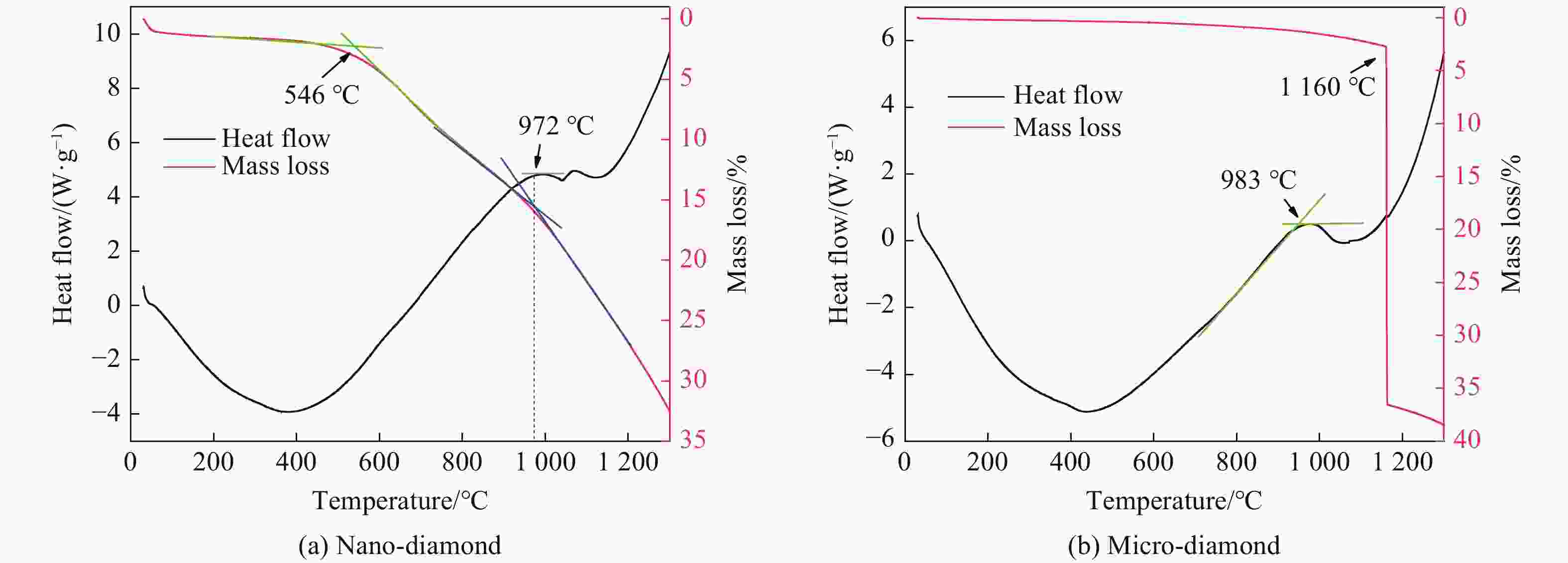 摘要: 高压下纳米金刚石石墨化对多晶金刚石烧结体的性能具有非常重要的影响。为此,在5~9 GPa、600~1500 ℃的压力温度范围,分别对平均晶粒尺寸为50 nm的纯纳米金刚石粉末和NaCl-纳米金刚石混合粉末的石墨化温度进行了研究。结合粉末X射线衍射的物相定量分析方法,分析了非静水压(纯金刚石粉末)和准静水压(NaCl-纳米金刚石混合粉末)下纳米金刚石在不同压力和温度下的石墨化程度。结果表明:5 GPa时,纯纳米金刚石粉末石墨化的起始温度在800 ℃以上,9 GPa时则在1000~1300 ℃之间;在约7 GPa的压力下,较短的保温时间内纳米金刚石的石墨化温度由非静水压环境中的1000 ℃提高到准静水压环境中的1500 ℃以上。Abstract: The graphitization process of nano-crystalline diamond (NCD) under high pressure significantly influences the performance of sintered polycrystalline diamond bulks. Here, we investigated the graphitization temperature of both pure nano-diamond, with an average grain size of 50 nm, and a mixture of NaCl and nano-diamond powder in a pressure and temperature range of 5−9 GPa and 600−1500 ℃, respectively. With a quantitative analysis method employing powder X-ray diffraction, we analyzed the graphitization degree of NCD under different pressures and temperatures, examining both non-hydrostatic pressure conditions (pure NCD powder) and quasi-hydrostatic pressure conditions (NaCl-NCD mixed powder). Our findings indicate that the initial graphitization temperature of pure NCD powder exceeds 800 ℃ at 5 GPa, and ranges between 1000 and 1300 ℃ at 9 GPa. Notably, under quasi-hydrostatic pressure conditions at about 7 GPa, the graphitization temperature of NCD increases from 1000 ℃ in non-hydrostatic pressure conditions to 1500 ℃ or higher within a short holding time.