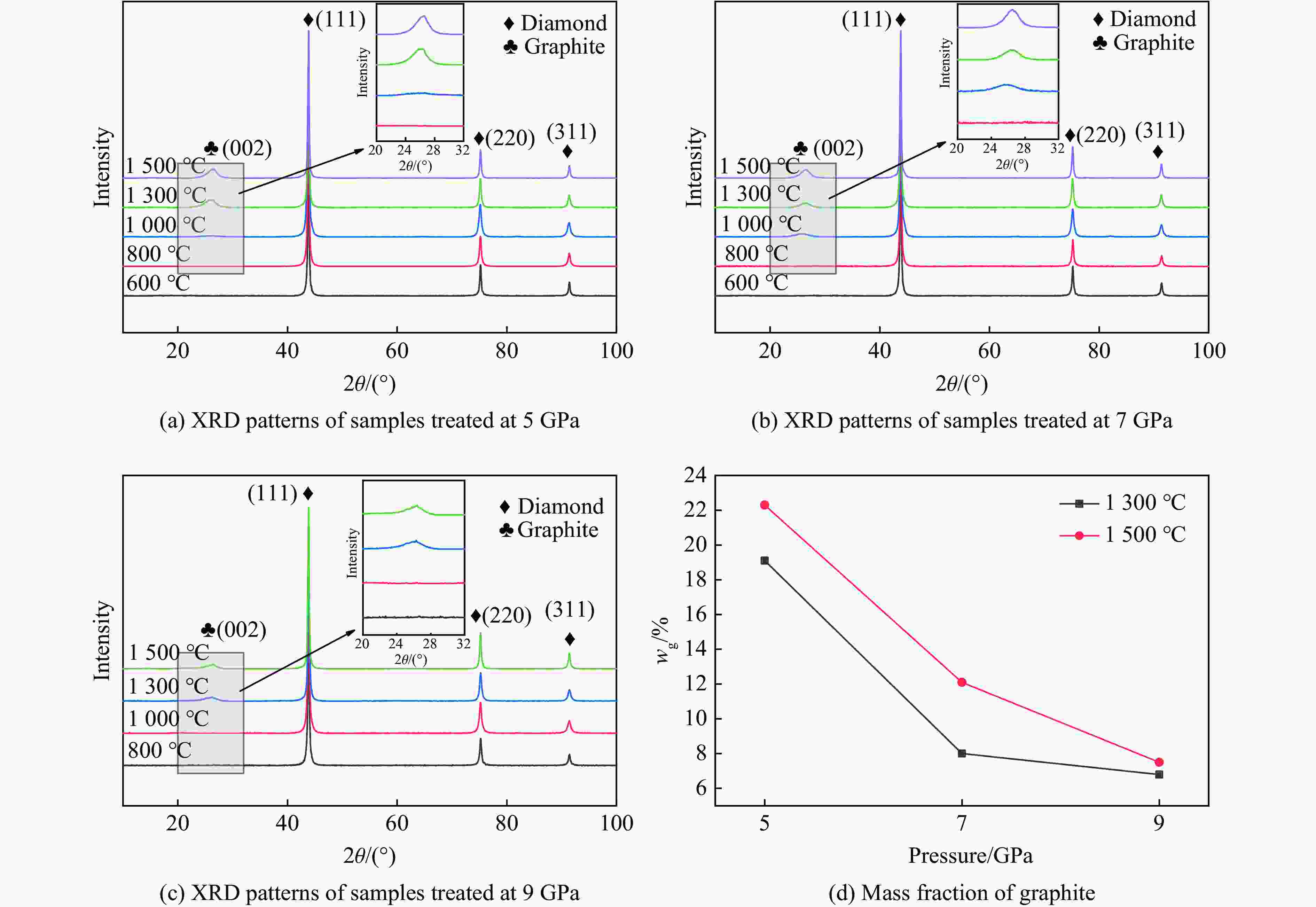 Table 1. Mass fraction of graphite in the recovered samples after high-temperature and high-pressure treatment