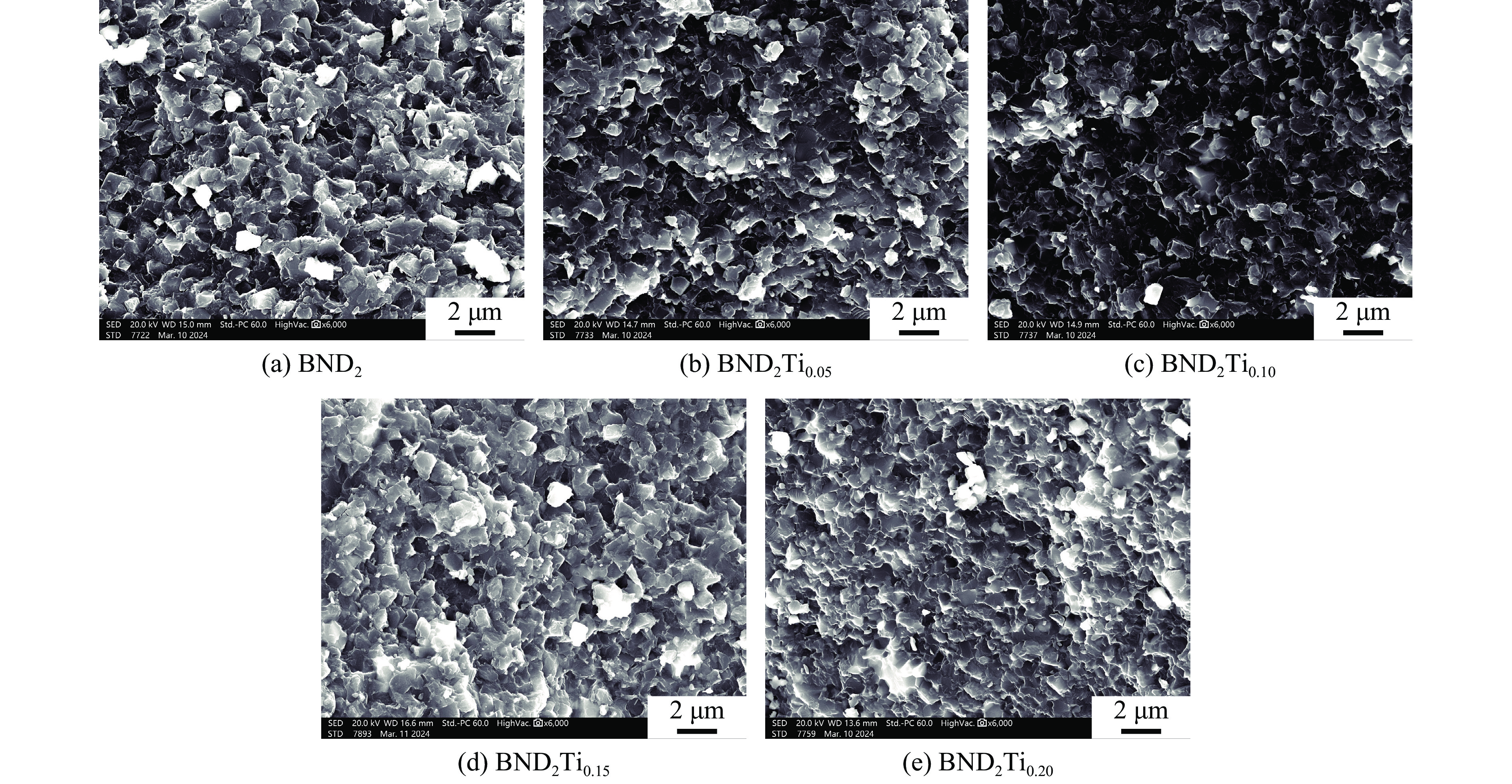 图  金刚石-Ti-cBN烧结样品断裂面的SEM图像
