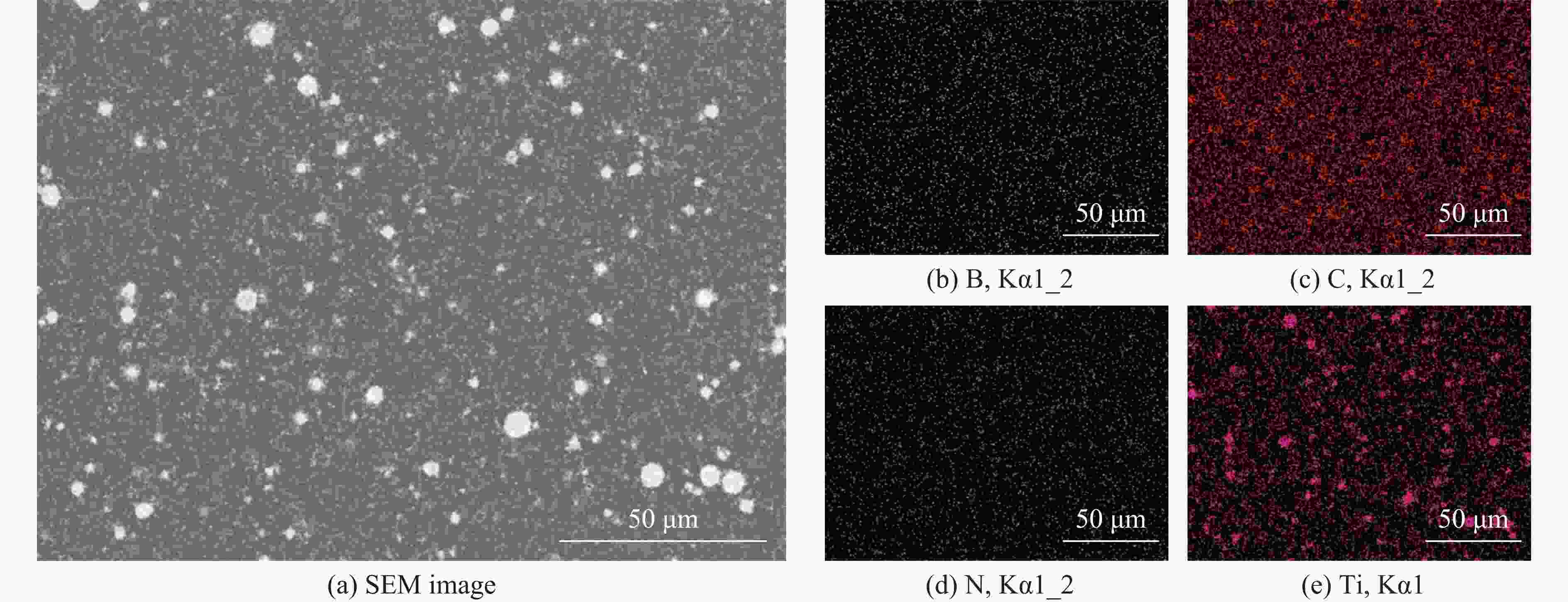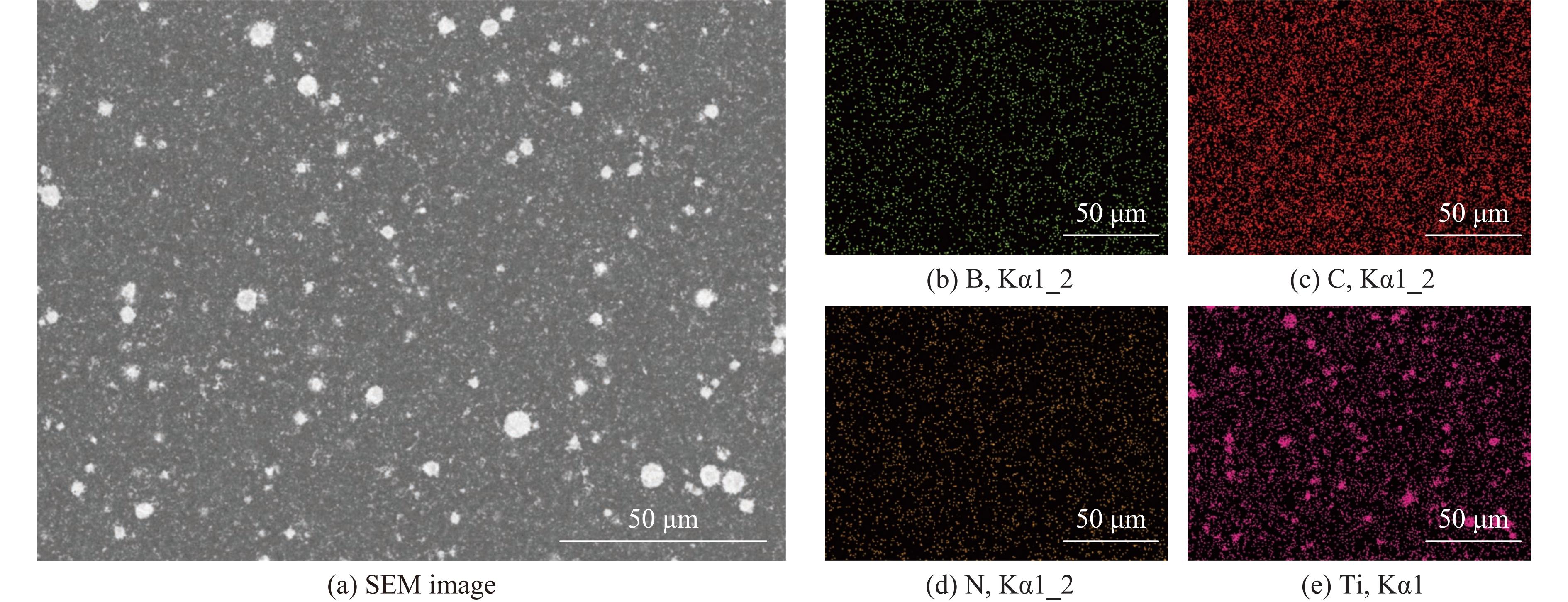 Figure  3.  SEM image and the corresponding EDS mapping of B, C, N, and Ti element for BND2Ti0.10 specimen