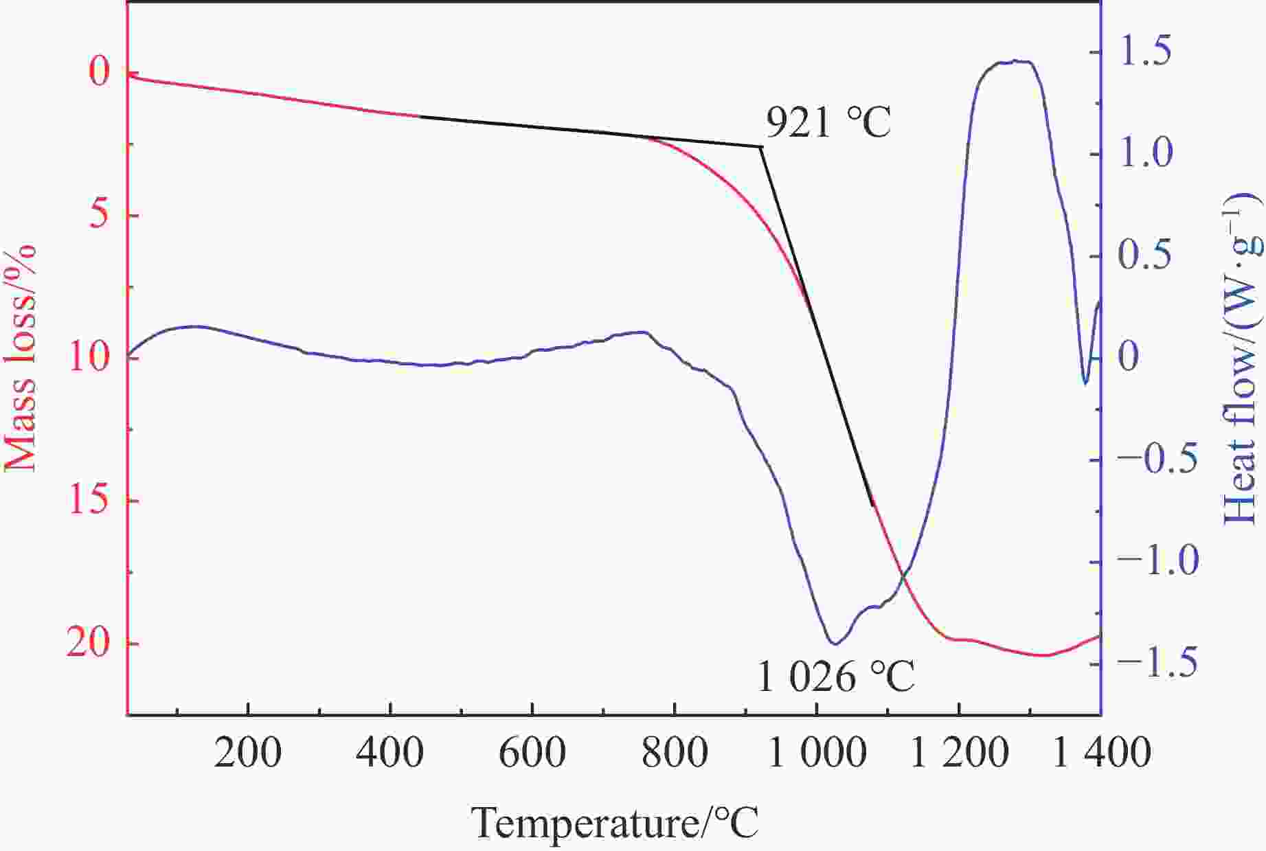 图  空气氛围下加热至1400 ℃的BND2Ti0.10烧结样品的TG-DSC曲线