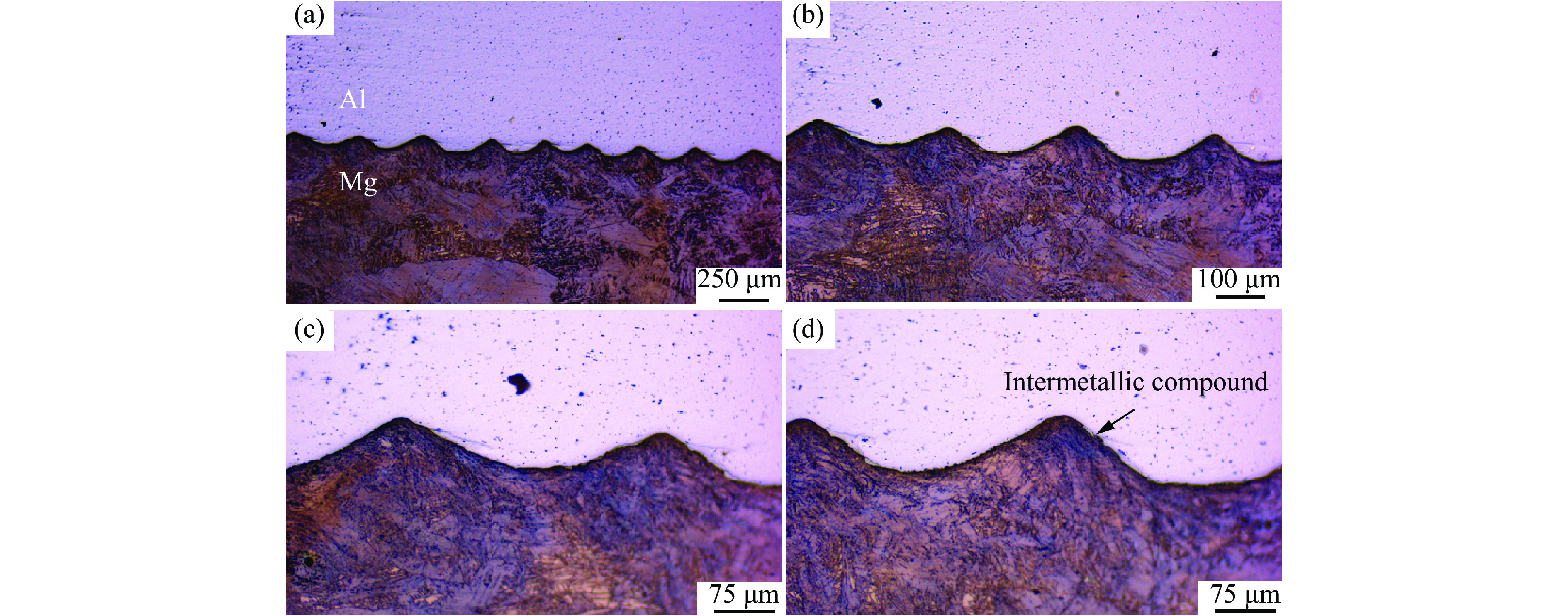 Materials Component content/% Al Si Ca Zn Mn Ti Mg Fe Mg-AZ31B 3.100 0.030 0.050 0.820 0.335 Rest 0.003 Al-6061 Rest 0.800 0.250 0.150 0.150 1.200 0.700 表 2 实验材料的力学性能