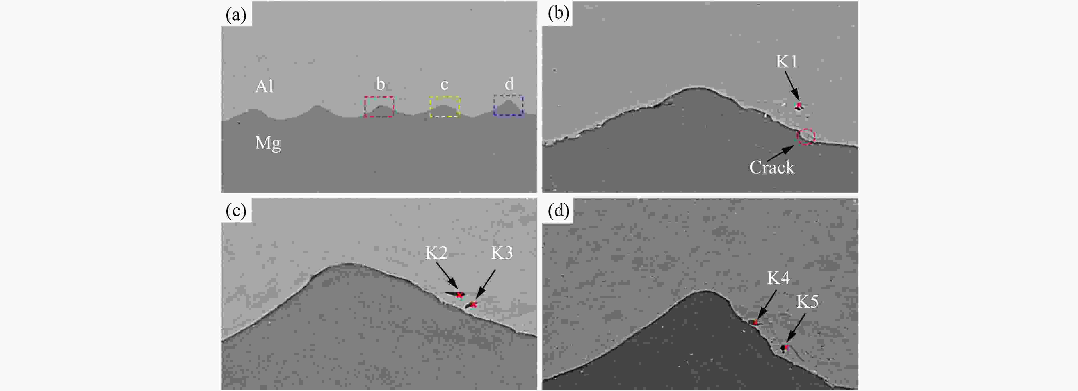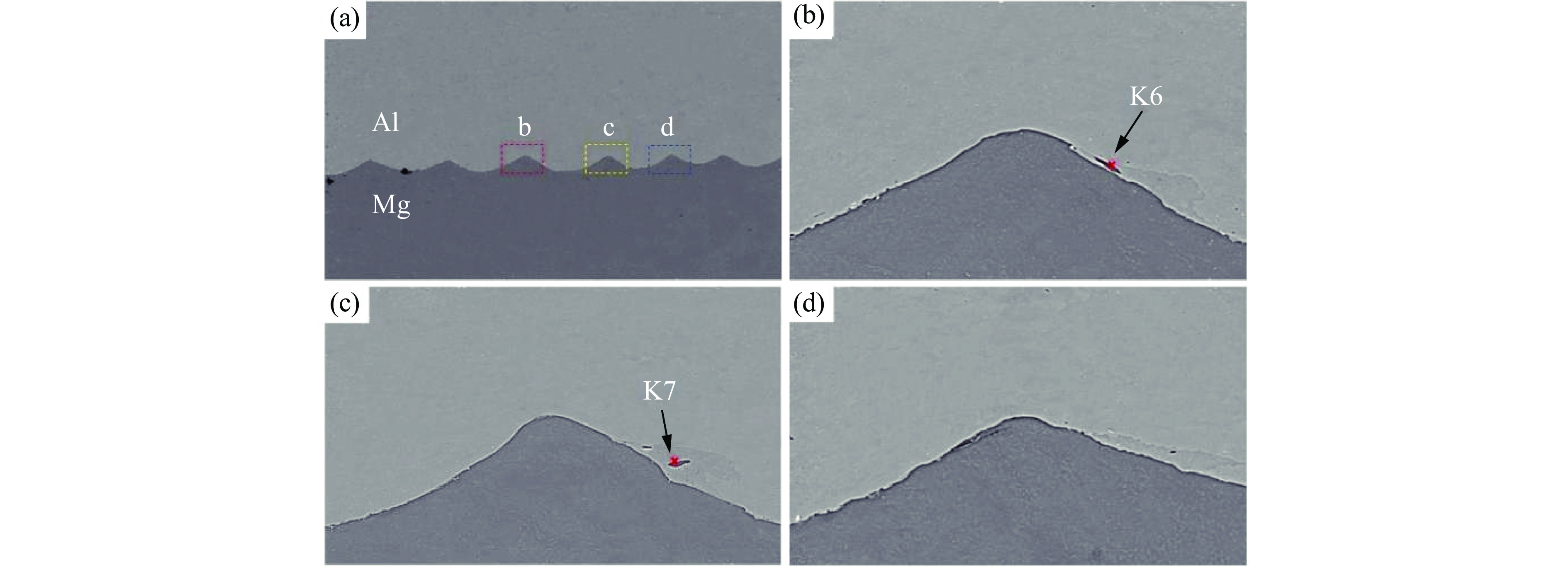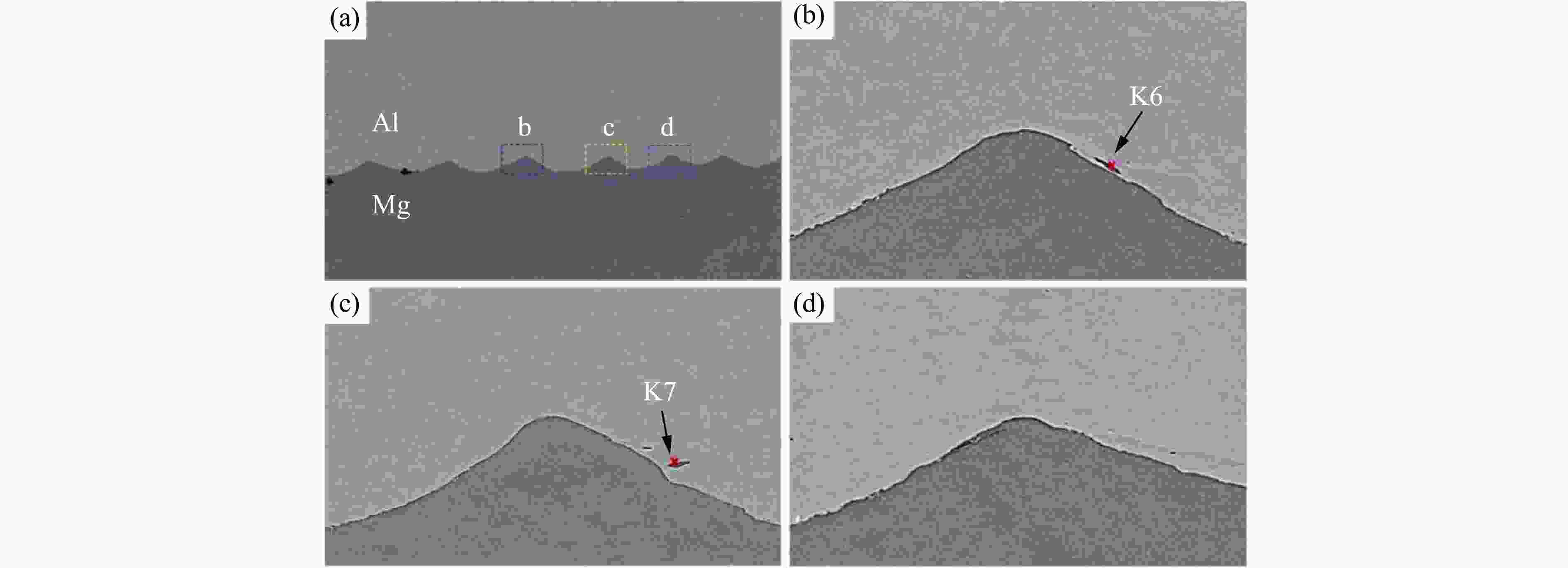 substance No.Environment Component content/% Mg Al O Mn Zn K1 Air 75.5 19.9 4.6 K2 Air 78.2 14.1 5.9 1.8 K3 Air 81.7 11.7 5.8 0.8 K4 Air 96.9 0.4 1.6 0.3 0.8 K5 Air 78.5 17.9 3.6 K6 Vacuum 79.0 18.8 0.4 1.2 0.6 K7 Vacuum 98.1 0.6 0.2 0.4 0.7 表 5 复合板不同部位的剪切强度