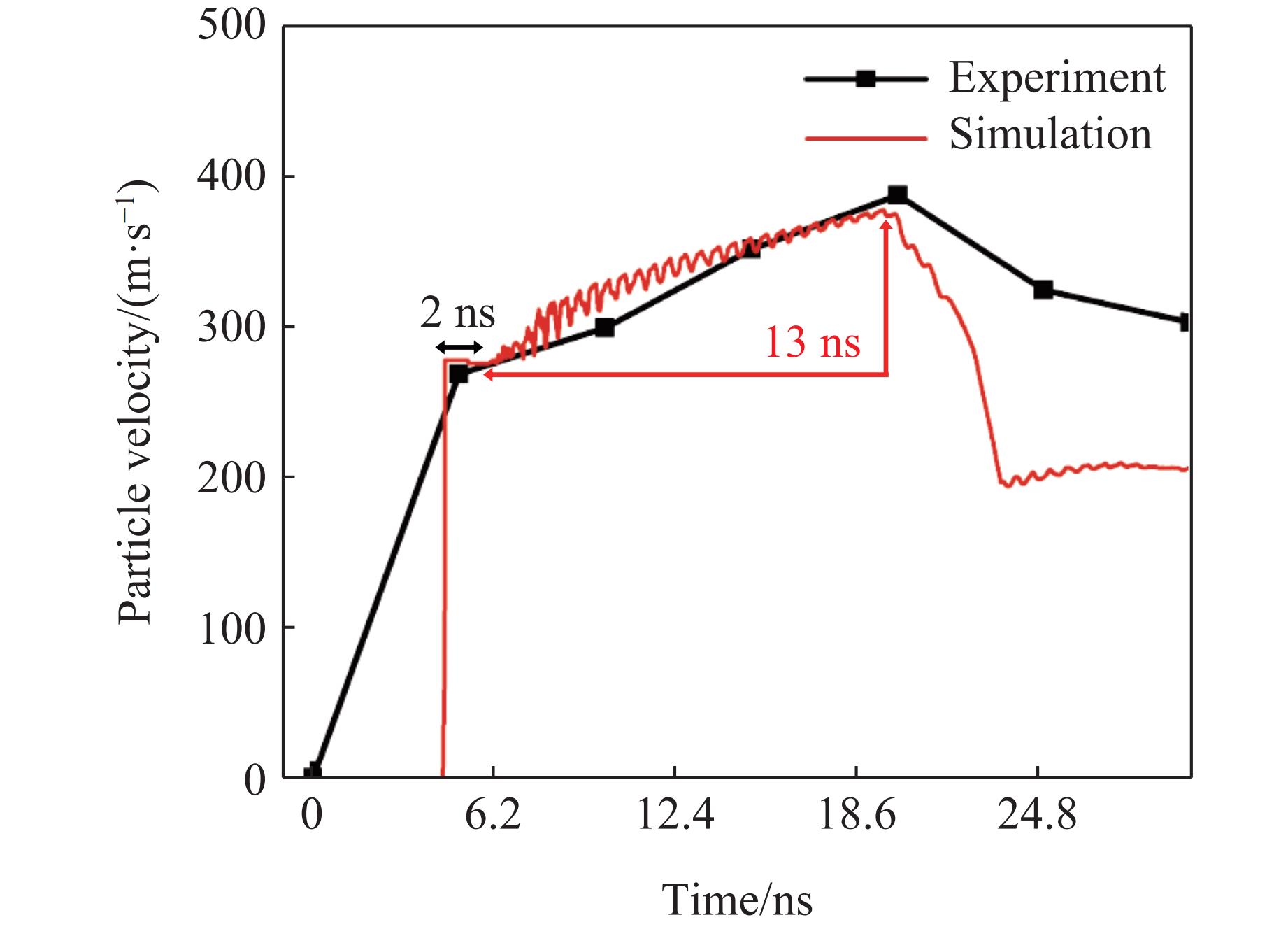 摘要: 基于波阻抗梯度材料的准等熵加载技术是掌握材料动态响应特性的重要技术手段,对于提升材料服役性能至关重要。采用电子束蒸发镀膜技术成功制备出Ti-Pt周期调制梯度材料,通过对周期层内双组分(Ti和Pt单层)厚度的调控,实现了波阻抗的宏观梯度变化。梯度材料实测总厚度与理论设计总厚度的误差仅为1.67%,并且实测平均硬度及弹性模量分别为2.8和99.8 GPa。材料内部层界面清晰,物相分析未发现金属合金相。利用一级轻气炮驱动Ti-Pt周期调制梯度材料加载5 μm厚Al靶,在Al靶内产生冲击-准等熵加载波形。数值模拟结果与实验曲线在上升趋势上吻合良好,5 μm厚Al靶处的粒子速度、应力和应变率曲线的准等熵段存在较大起伏,应变率曲线在正负值间持续振荡,并且振幅较大。应力云图显示周期调制梯度材料在加载过程中会形成多个波系的追赶、叠加、整合。数值模拟结果显示,当靶材厚度为60 μm时,波系完成整合,转变为连续的压缩波。结合数值模拟结果开展了60 μm厚Al靶的轻气炮加载实验,粒子速度曲线和应力曲线的准等熵段转变为平滑的加载波形,应变率曲线准等熵段振幅显著减小,实现了良好的准等熵加载效果。研究结果表明,周期调制梯度材料与靶材厚度需进行匹配设计,研究结果可为新型周期调制梯度结构的应用提供指导。