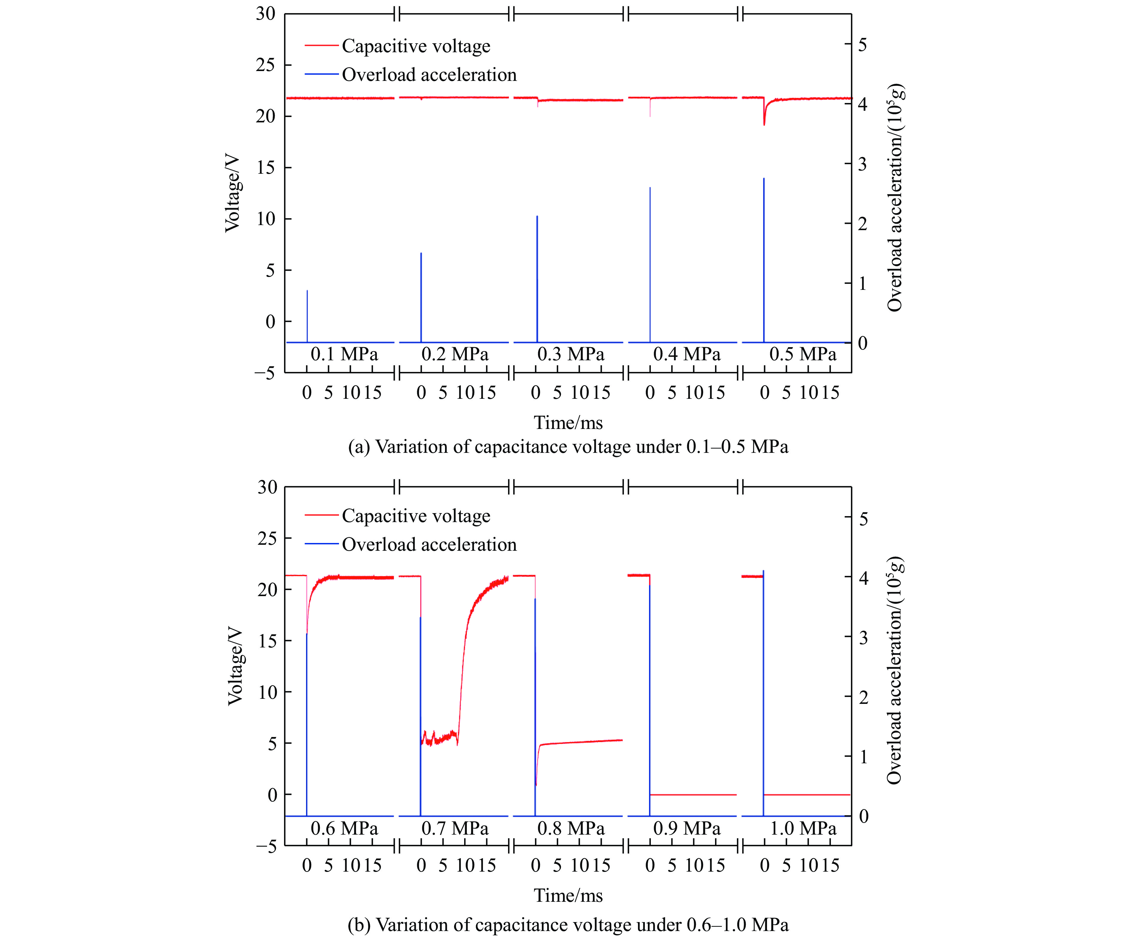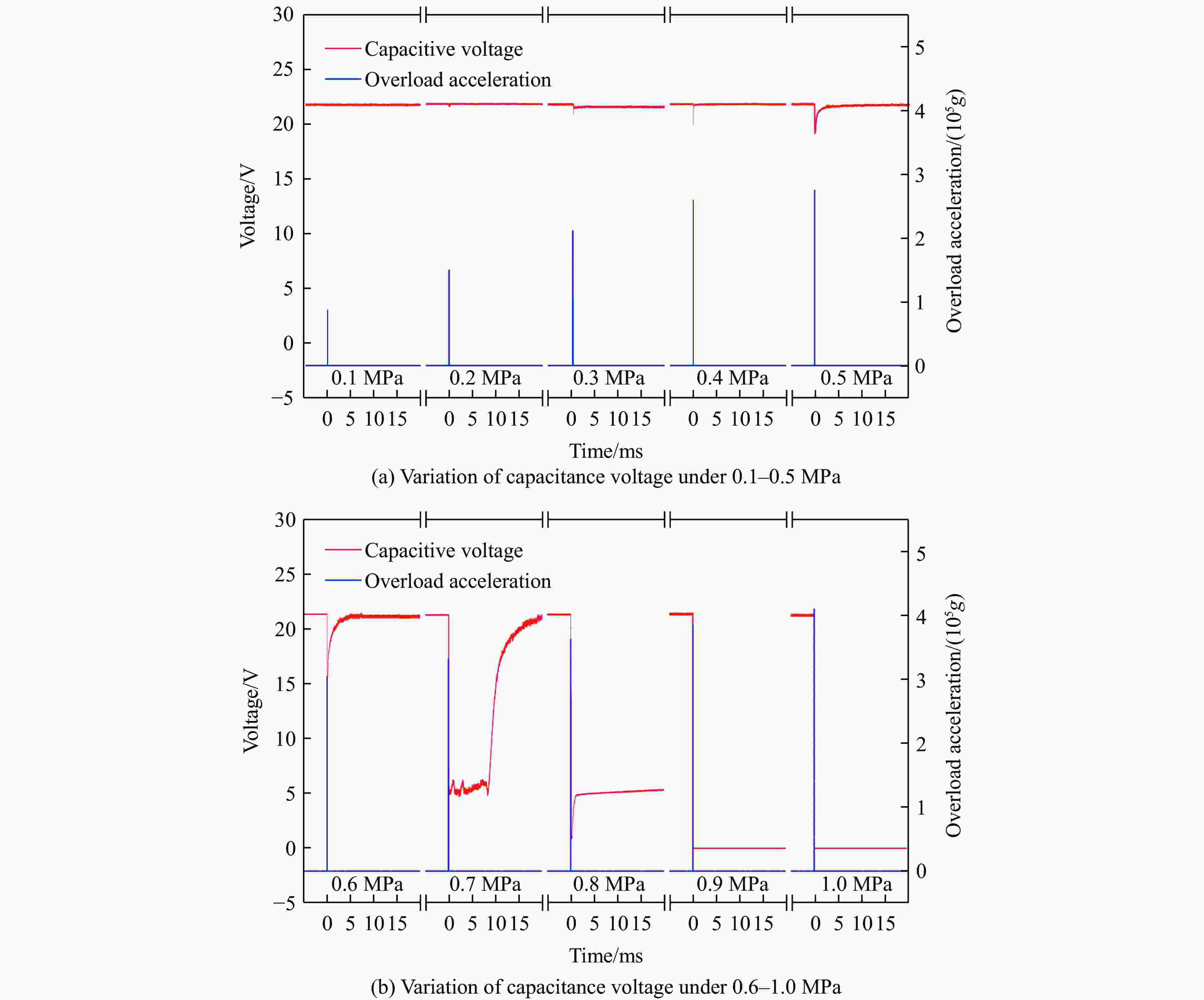 图  B型试件受高过载时的电容电压变化