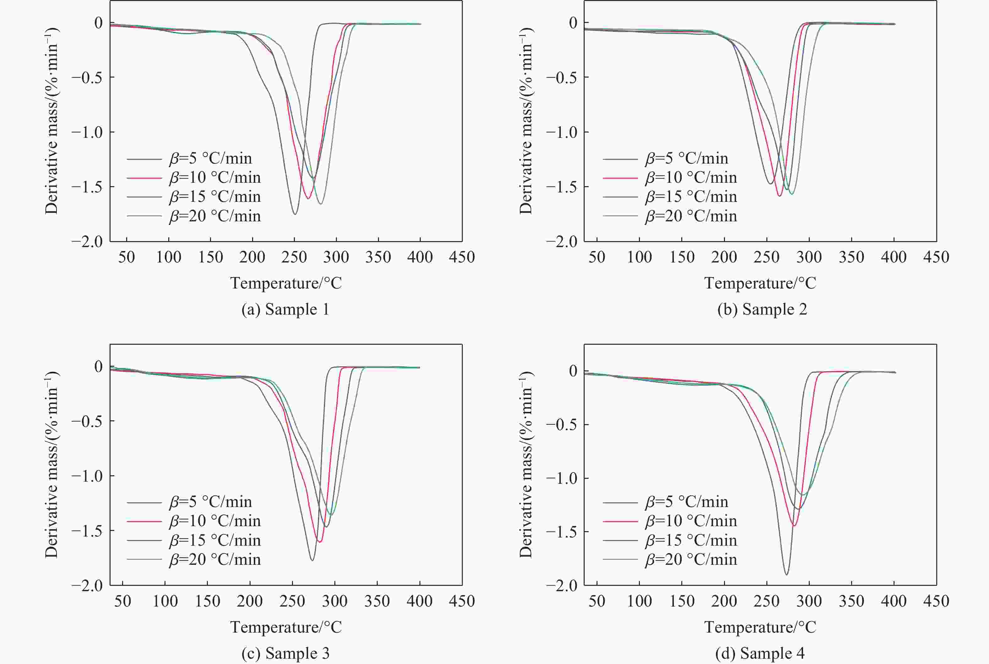 Samples Tb/℃ TSADT/℃ 1 229.52 188.96 2 261.12 222.94 3 268.01 240.67 4 282.67 248.81 表 6 4种样品的$\Delta {H^ \ne } $、$\Delta {S^ \ne } $和$\Delta {G^ \ne } $