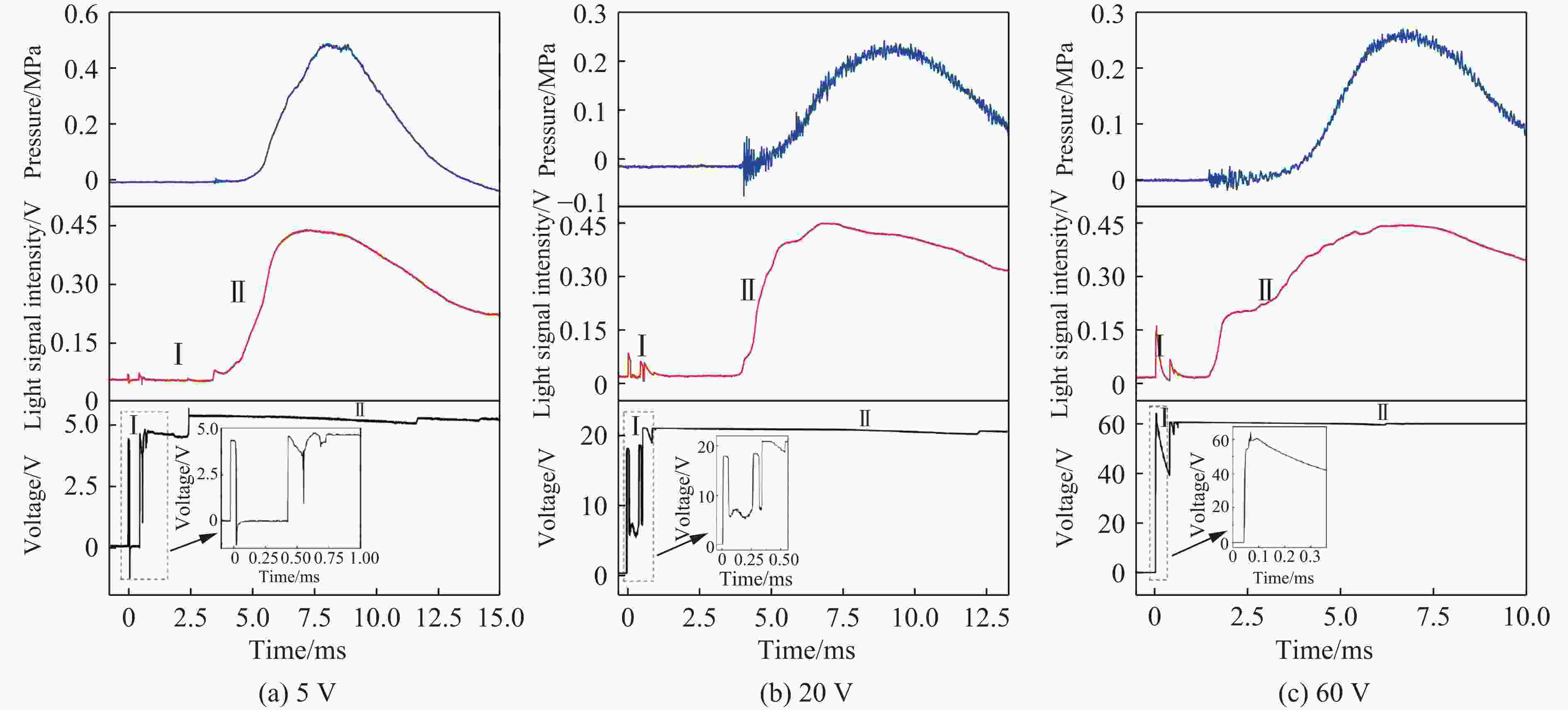 图  点火电压为5、20和60 V时电点火头的发火信号