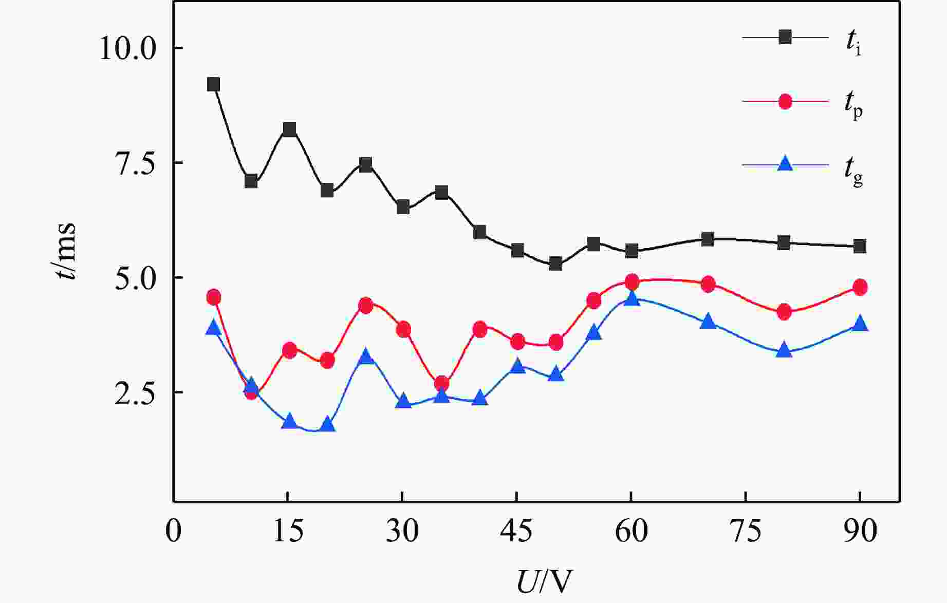 图  电点火头的发火时间参数随点火电压的变化关系