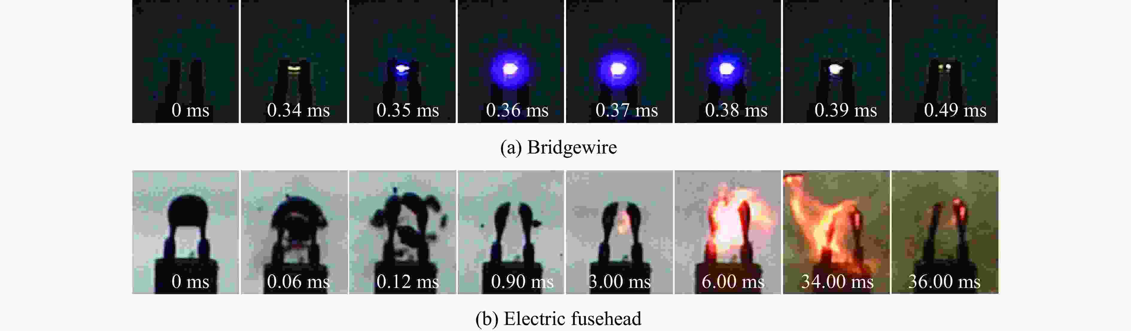 图  桥丝和电点火头发火过程的高速摄影图像