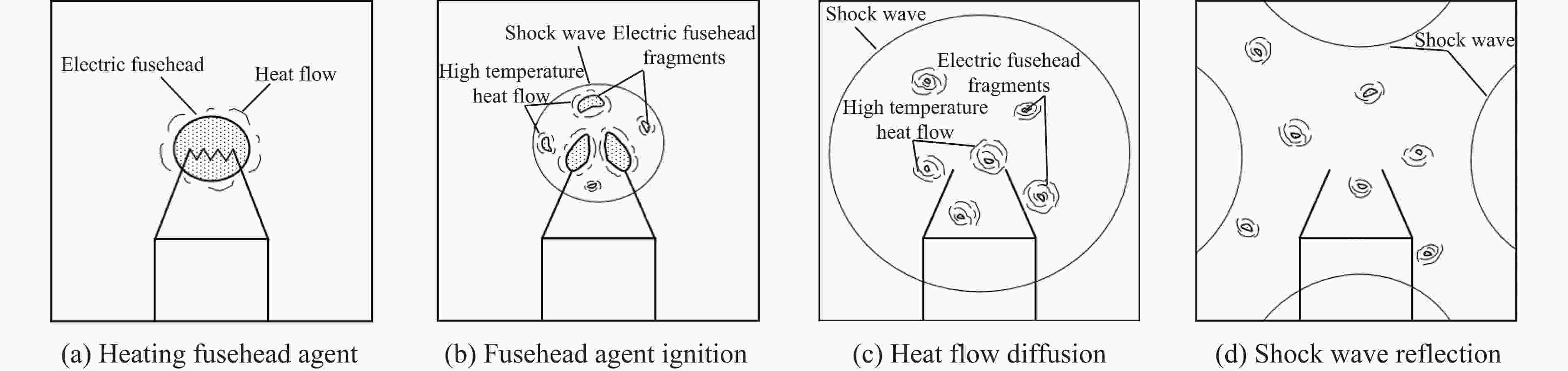 图  桥丝式电点火头发火历程物理模型