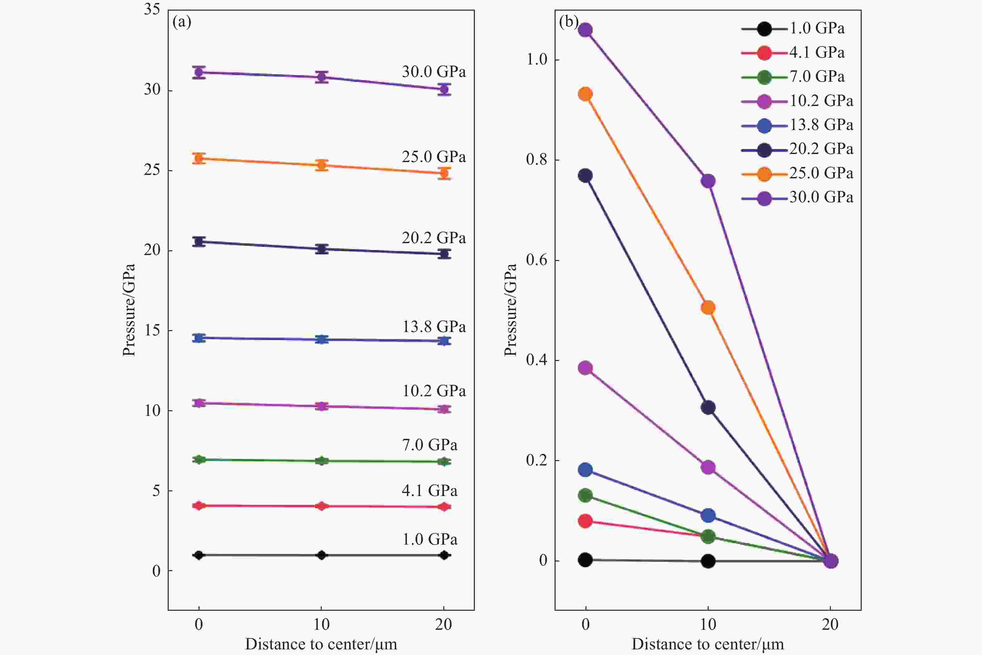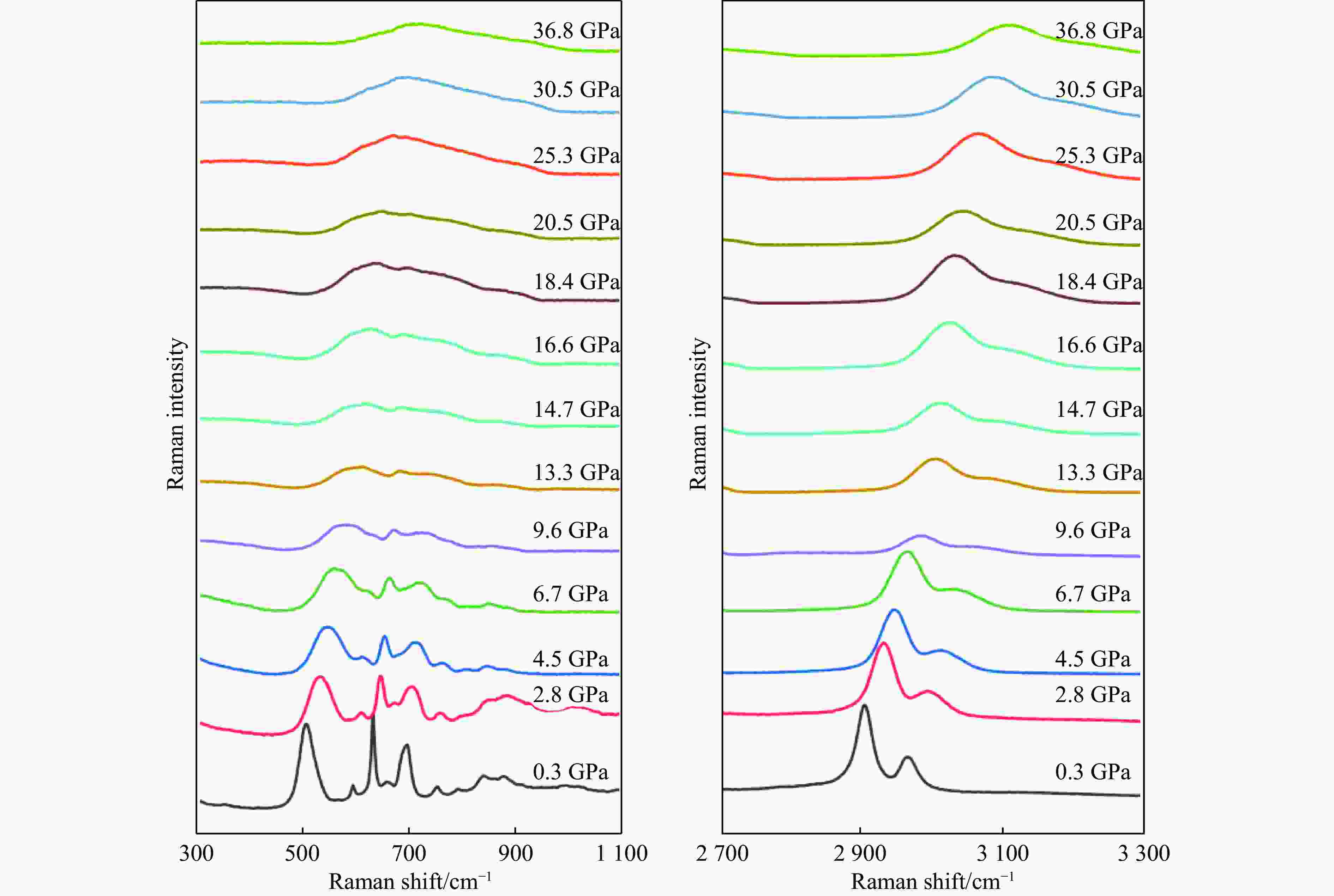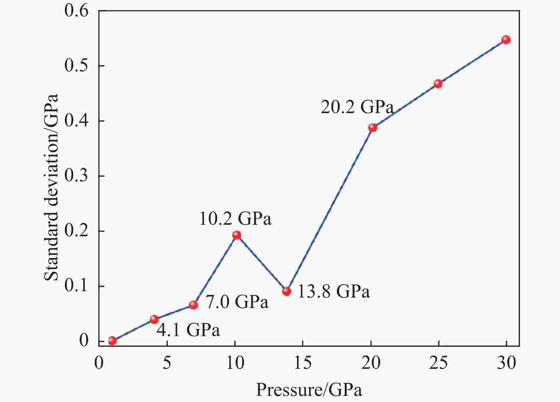 摘要: 金刚石压腔是被广泛使用的静高压装置之一,具有压力范围宽,光学适用性优良以及使用便利等优点,对高压科学的发展起到了巨大的推动作用。然而,压力较高时,传压介质固化等因素可能造成压腔内静水压环境失衡,从而产生压力梯度。采用皮秒超声技术测量压腔内各处的声学信号,通过声学数据分析获得了高压下样品腔内硅油的压力分布,结果显示:压力梯度随压强的升高而增大,从1 GPa时的1.3×10−4 GPa/μm增长为30 GPa时的5.3×10−2 GPa/μm。该方法不仅克服了以往实验技术在信号测量连续性、样品选择等方面的限制,还可在普通实验室搭建和使用。此外,还结合原位拉曼光谱技术,分析了加压过程中硅油中压力标准差的异常波动,该波动可能与硅油在经历了玻璃化转变之后发生固-固相变有关。Abstract: Diamond anvil cell (DAC) is a kind of widely used static-high-pressure device. Benefitting from its wide pressure range, excellent optical applicability and convenience of use, DAC provides a tremendous boost to the development of high-pressure science. However, at high pressures, factors like solidification of pressure transmitting medium may cause destruction of the hydrostatic pressure condition in the DAC sample chamber, leading to the generation of pressure gradients. In this work, a new method of using the technique of picosecond ultrasonics to investigate acoustic signal distribution at various locations within the sample chamber was proposed, which can analyze the pressure distribution via the acoustic observations. Limitations in the continuity of signal acquisition, sample selection, etc. can be overcome in this experimental technique, which could be built and manipulated in an ordinary laboratory. Here, pressure gradient in silicon oil was carried out under compression using this technique, and the results revealed that the pressure gradient in the sample chamber increased from 1.3×10−4 GPa/μm at 1 GPa to 5.3×10−2 GPa/μm at 30 GPa. In addition, the anomalous change of standard deviation of the pressure distribution was analyzed by combining it with in-situ Raman spectroscopy, then the possible phase transitions of silicone oil at high pressures were discussed.
