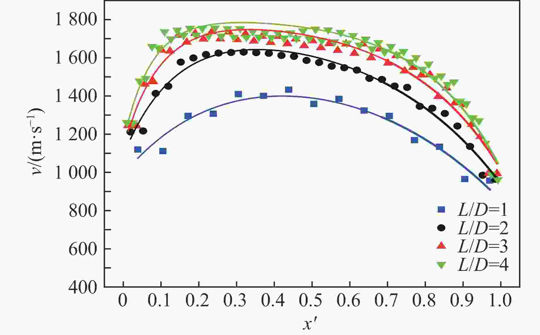 图  16  不同长径比装药结构的破片速度沿轴线的分布