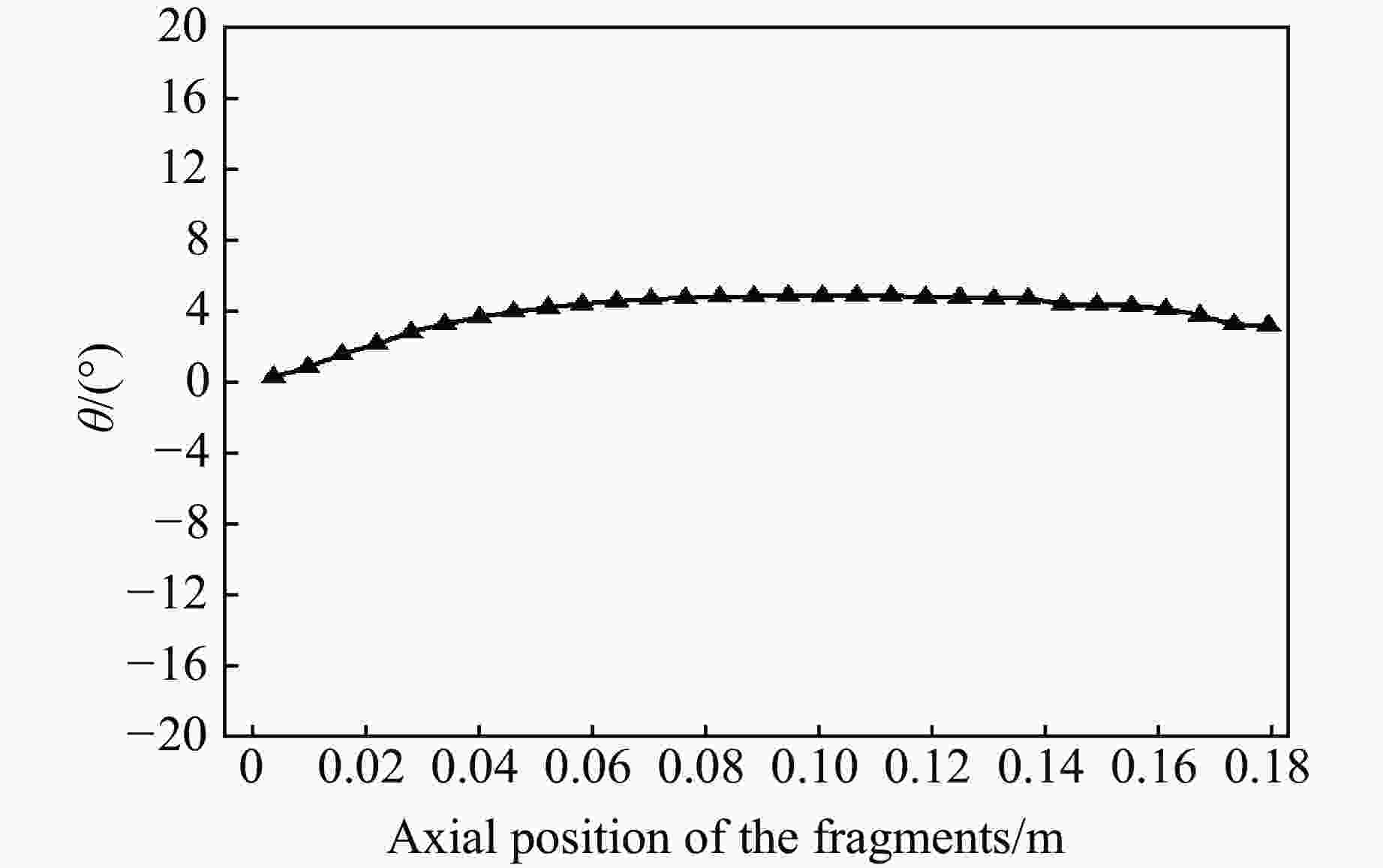 图  由Shapiro公式得到的飞散角沿装药轴线方向的分布
