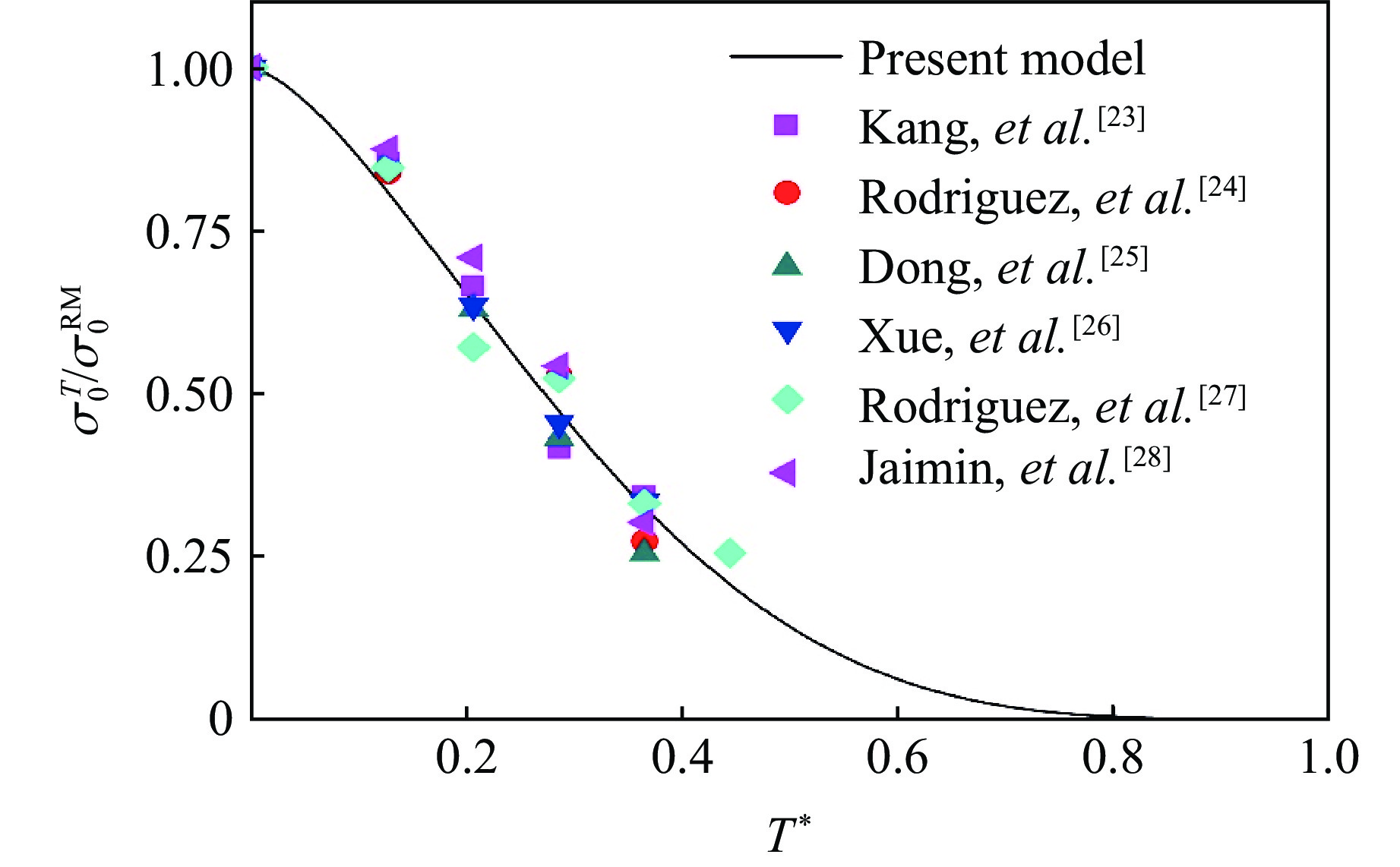 图  10  本模型预测的${ {\sigma }_{0}^{T}/{\sigma }_{0}^{\rm {RM}} }$与${ {T}^{\mathrm{*}}} $的关系