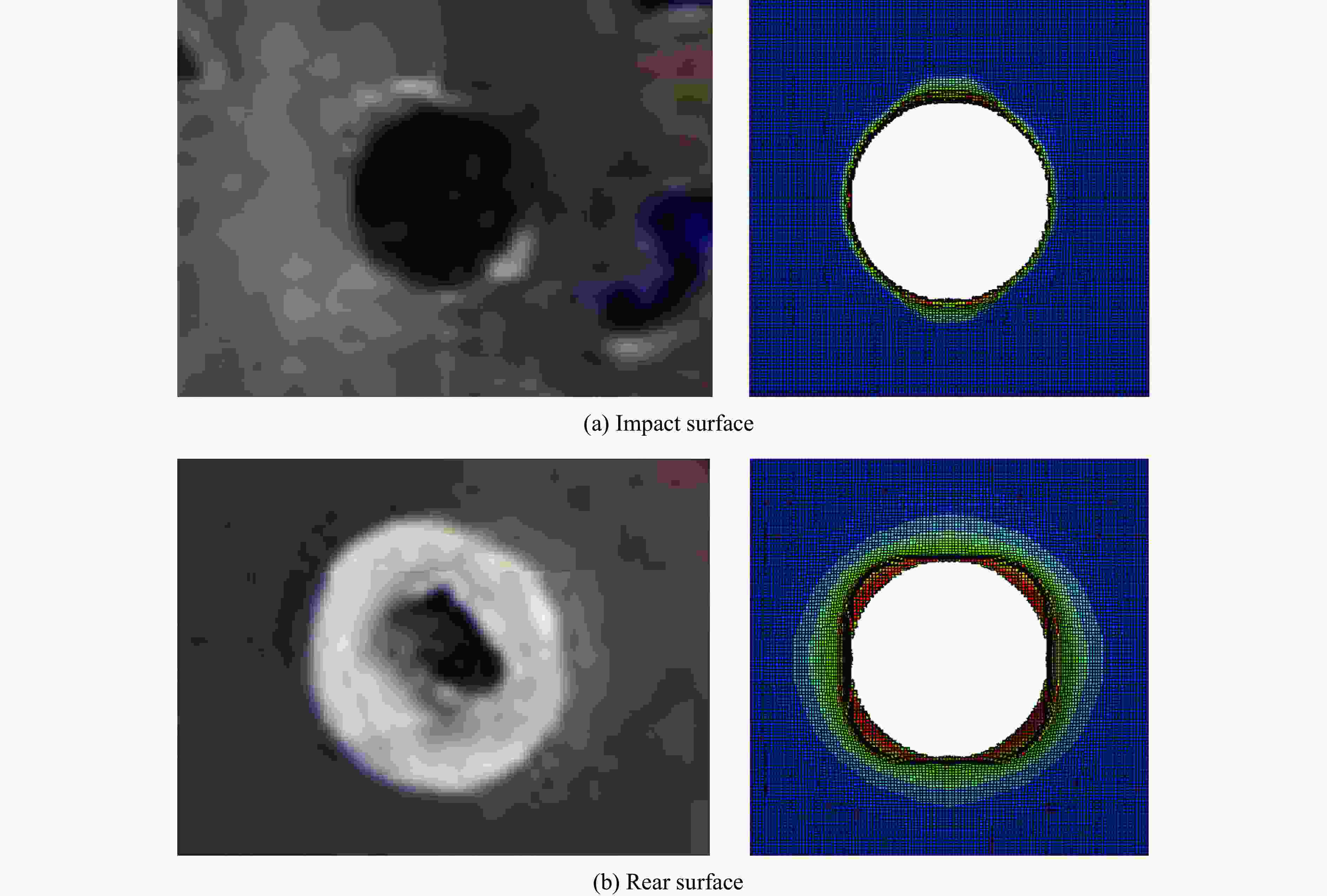 图  17  模拟得到的0.5-cal FSP子弹撞击25 mm厚AZ31B镁合金靶板时靶板破坏模式与试验结果[32]的对比