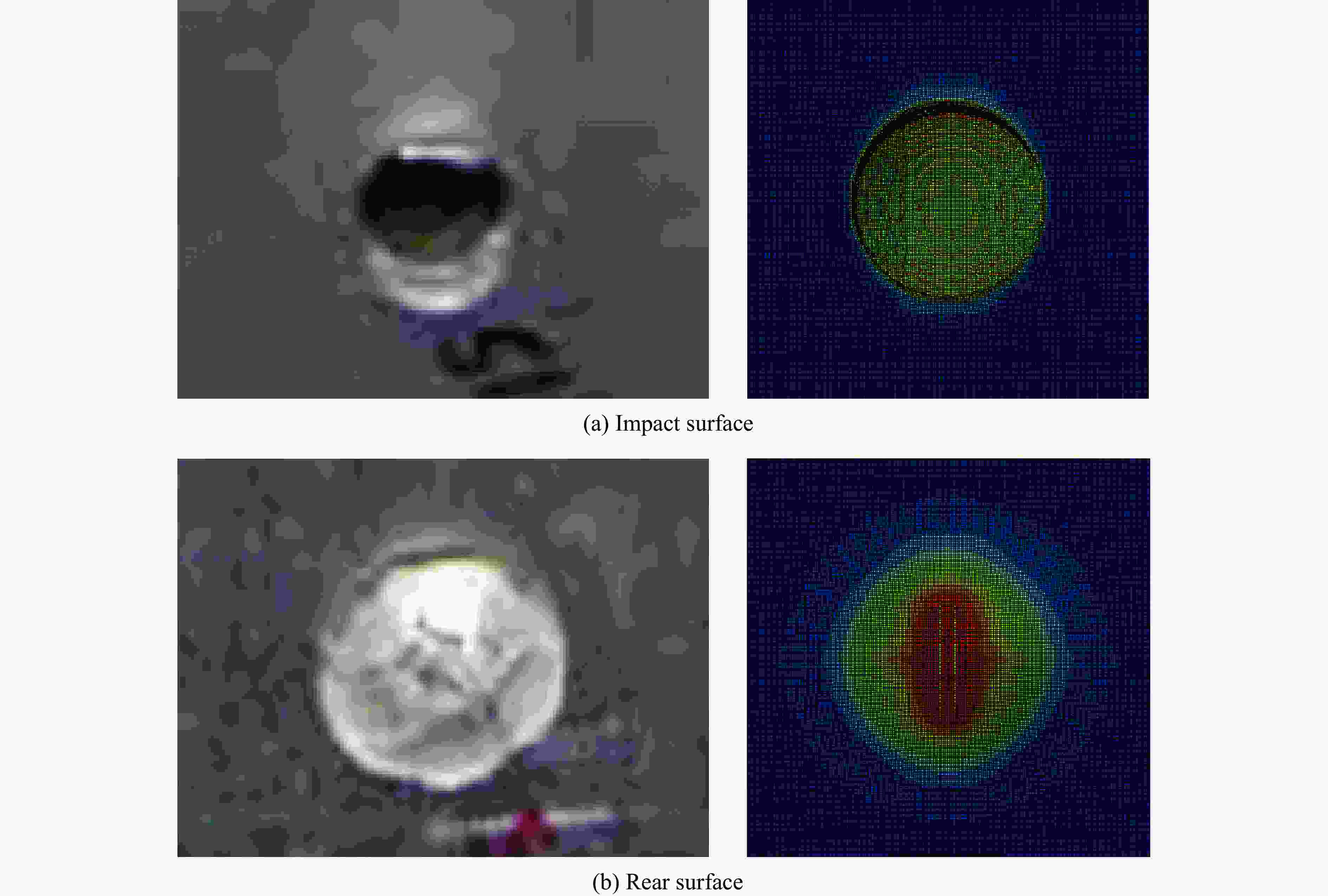 Figure  17.  Comparison of numerically predicted failure pattern with the test result[32] for 25 mm thick AZ31B magnesium alloy plate struck by 0.5-cal FSP bullet