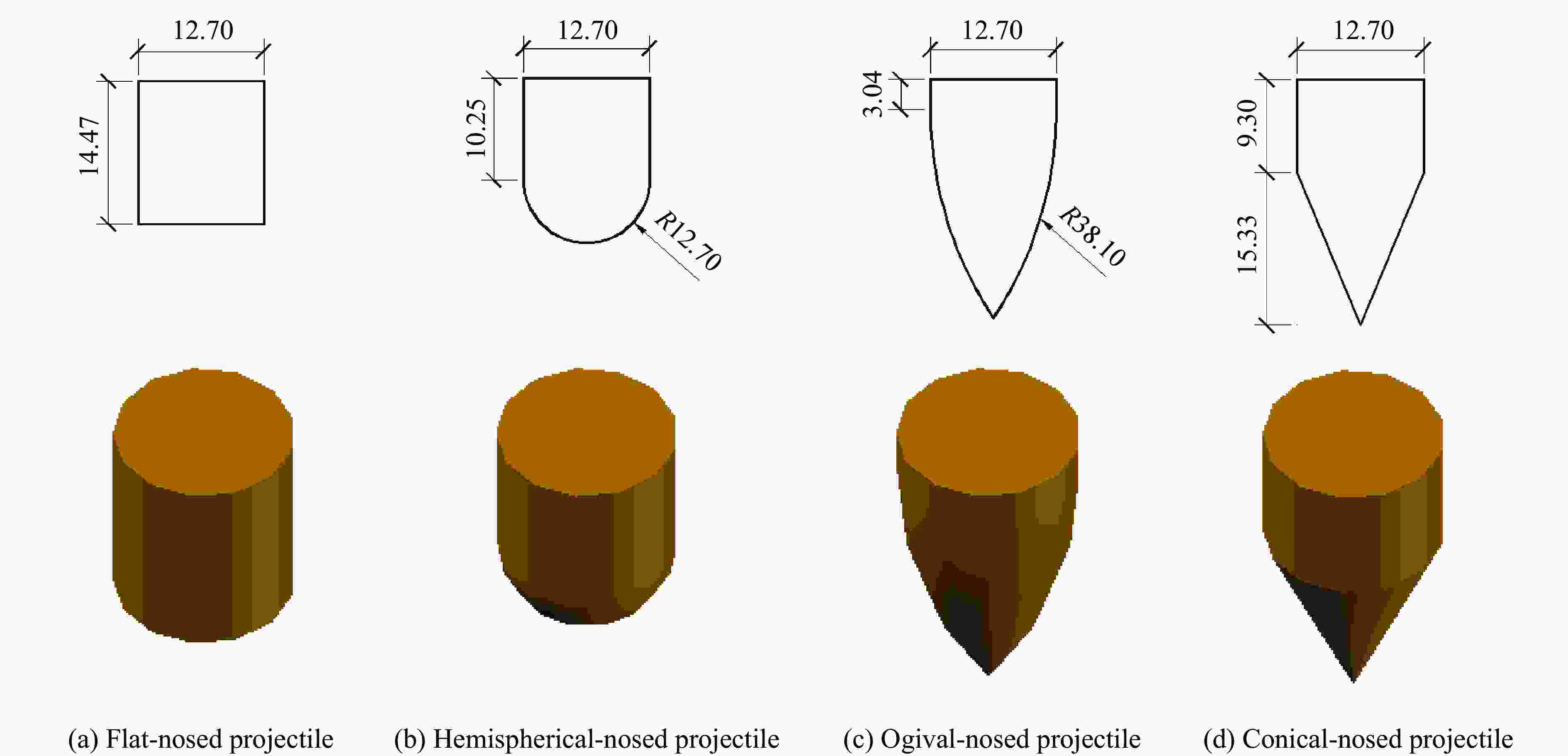 Figure  20.  Schematic diagram of bullets with different nose shapes (Unit: mm)