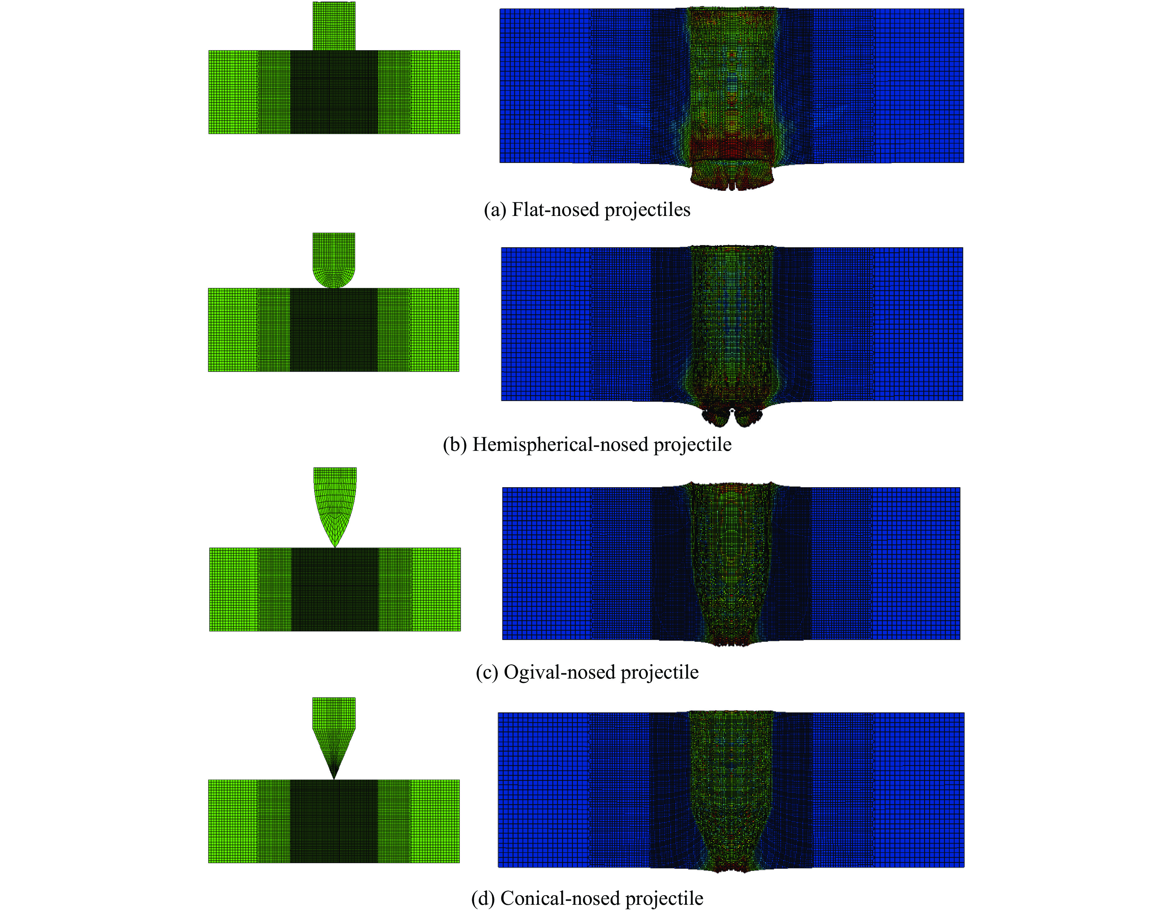 Figure  22.  Numerical predictions of failure patterns for 4 mm thick AZ31B magnesium alloy plate subjected to impacts of different nose shape projectiles