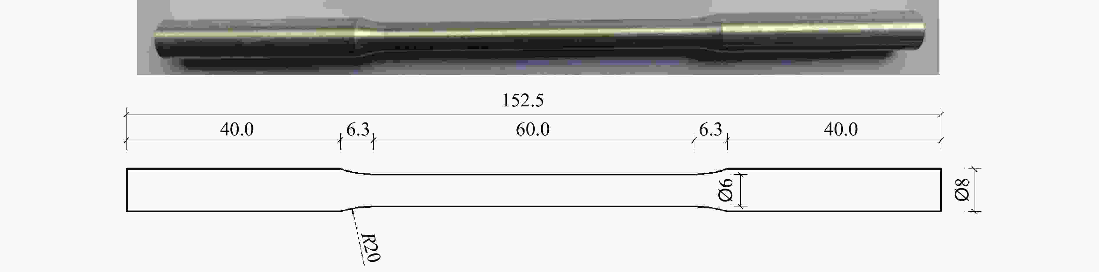 Figure  3.  Photograph and dimensional diagram of the quasi-static tensile specimen (Unit: mm)