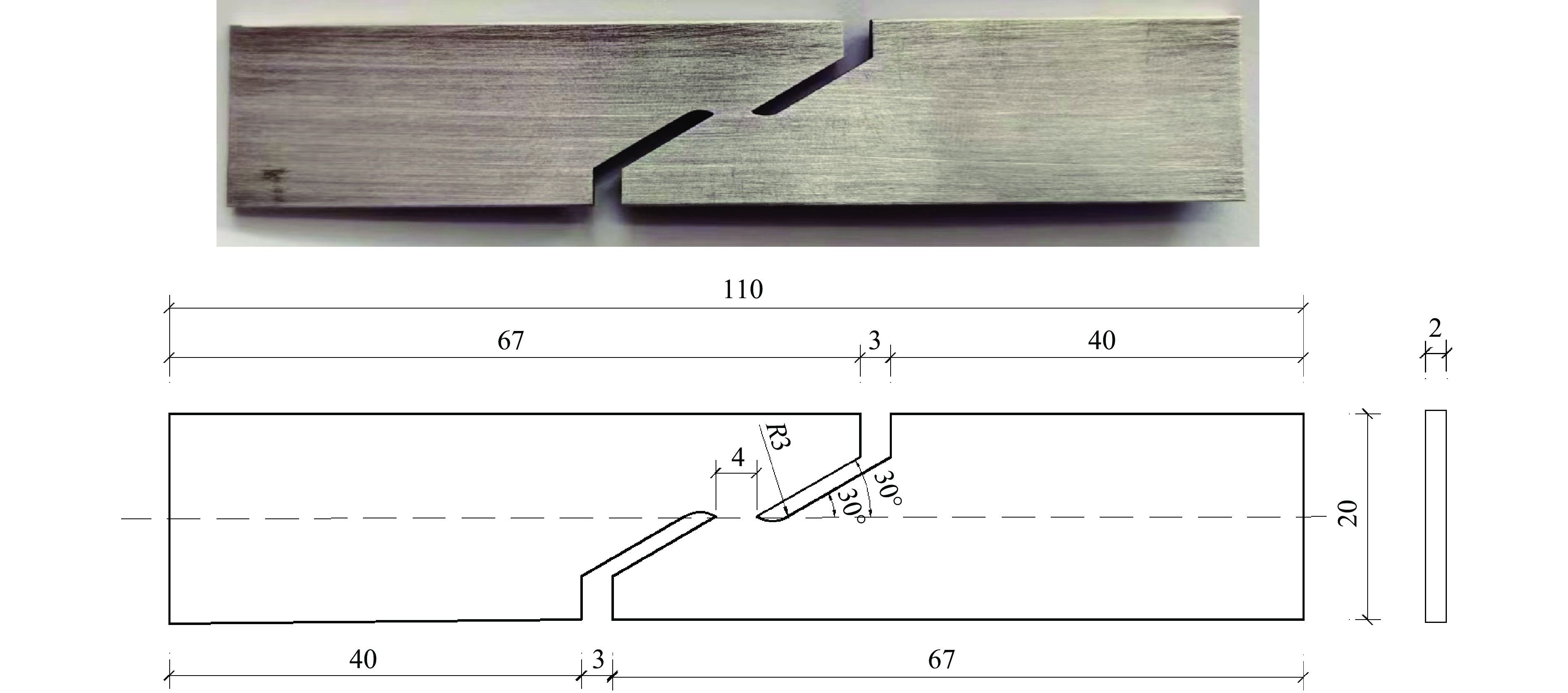 图  准静态异形剪切试样的照片和尺寸(单位:mm)