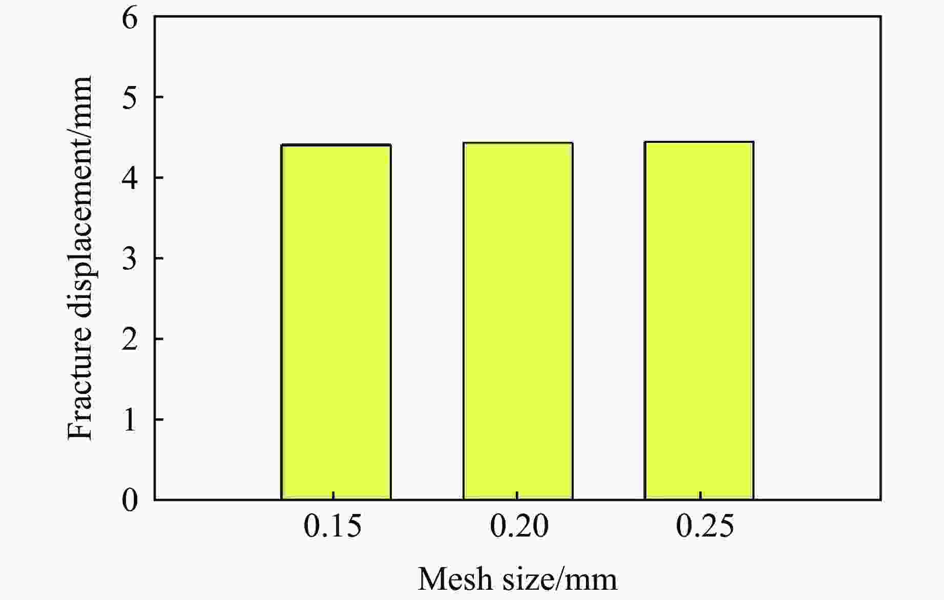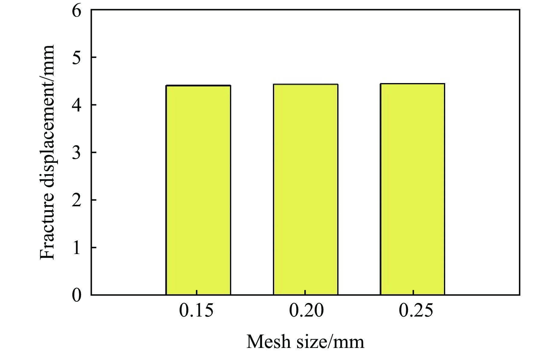 图  准静态拉伸下不同网格尺寸对应的断裂位移