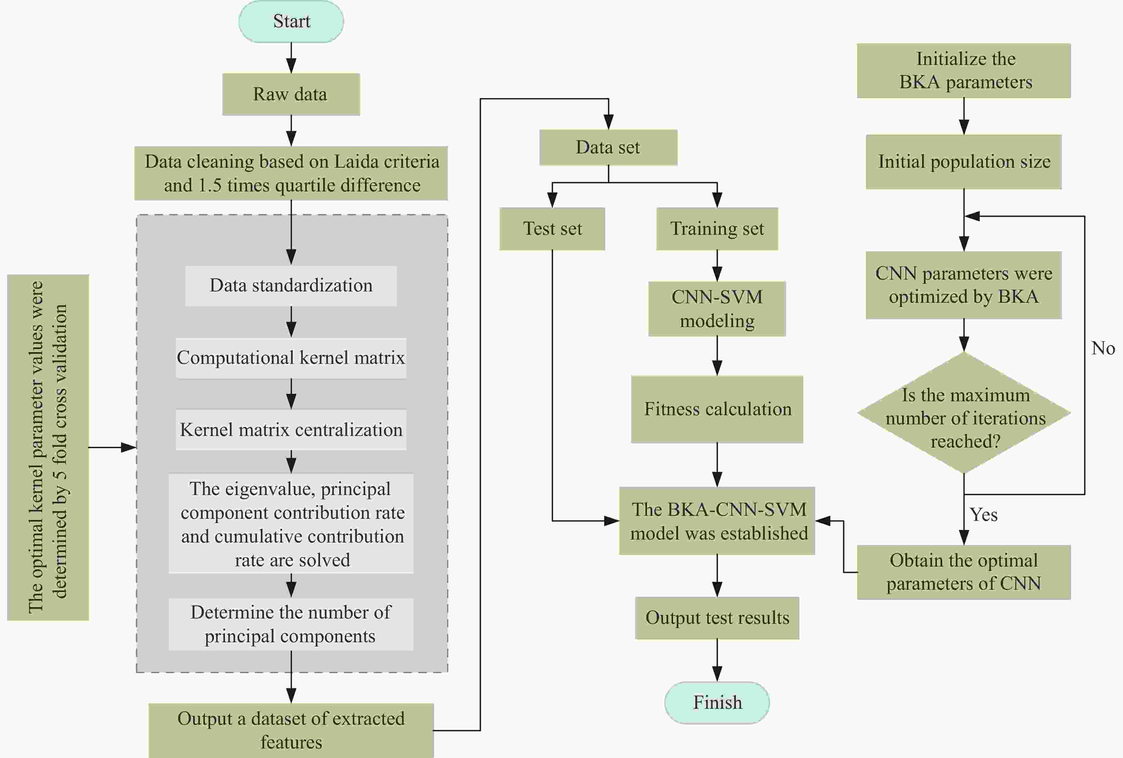 [1] 冯夏庭, 肖亚勋, 丰光亮, 等. 岩爆孕育过程研究 [J]. 岩石力学与工程学报, 2019, 38(4): 649–673.FENG X T, XIAO Y X, FENG G L, et al. Study on the development process of rockbursts [J]. Chinese Journal of Rock Mechanics and Engineering, 2019, 38(4): 649–673. [2] 汤志立, 徐千军. 基于9种机器学习算法的岩爆预测研究 [J]. 岩石力学与工程学报, 2020, 39(4): 773–781.TANG Z L, XU Q J. Rockburst prediction based on nine machine learning algorithms [J]. Chinese Journal of Rock Mechanics and Engineering, 2020, 39(4): 773–781. [3] 李宁, 王李管, 贾明涛. 基于粗糙集理论和支持向量机的岩爆预测 [J]. 中南大学学报(自然科学版), 2017, 48(5): 1268–1275.LI N, WANG L G, JIA M T. Rockburst prediction based on rough set theory and support vector machine [J]. Journal of Central South University (Science and Technology), 2017, 48(5): 1268–1275. [4] 吴顺川, 张晨曦, 成子桥. 基于PCA-PNN原理的岩爆烈度分级预测方法 [J]. 煤炭学报, 2019, 44(9): 2767–2776.WU S C, ZHANG C X, CHENG Z Q. Prediction of intensity classification of rockburst based on PCA-PNN principle [J]. Journal of China Coal Society, 2019, 44(9): 2767–2776. [5] 李明亮, 李克钢, 秦庆词, 等. 岩爆烈度等级预测的机器学习算法模型探讨及选择 [J]. 岩石力学与工程学报, 2021, 40(Suppl 1): 2806–2816.LI M L, LI K G, QIN Q C, et al. Discussion and selection of machine learning algorithm model for rockburst intensity grade prediction [J]. Chinese Journal of Rock Mechanics and Engineering, 2021, 40(Suppl 1): 2806–2816. [6] 吴菡, 郭永刚, 何军杰, 等. 基于GWO-SVM岩爆分级预测模型 [J]. 路基工程, 2023(1): 49–54.WU H, GUO Y G, HE J J, et al. Rock burst classification prediction model based on GWO-SVM [J]. Subgrade Engineering, 2023(1): 49–54. [7] BASNET P M S, MAHTAB S, JIN A B. A comprehensive review of intelligent machine learning based predicting methods in long-term and short-term rock burst prediction [J]. Tunnelling and Underground Space Technology, 2023, 142: 105434. doi: 10.1016/j.tust.2023.105434 [8] 靳春玲, 姬照泰, 贡力, 等. 基于WOA-SVM的引水隧洞岩爆烈度评估模型 [J]. 中国安全科学学报, 2023, 33(9): 41–48.JIN C L, JI Z T, GONG L, et al. Evaluation model of rockburst intensity of diversion tunnel based on WOA-SVM [J]. China Safety Science Journal, 2023, 33(9): 41–48. [9] 李康楠, 吴雅琴, 杜锋, 等. 基于卷积神经网络的岩爆烈度等级预测 [J]. 煤田地质与勘探, 2023, 51(10): 94–103. doi: 10.12363/issn.1001-1986.23.01.0018LI K N, WU Y Q, DU F, et al. Prediction of rockburst intensity grade based on convolutional neural network [J]. Coal Geology & Exploration, 2023, 51(10): 94–103. doi: 10.12363/issn.1001-1986.23.01.0018 [10] 郭延华, 赵帅. 基于KPCA-WOA-KELM的岩爆烈度预测 [J]. 河北工程大学学报(自然科学版), 2021, 38(2): 1–7.GUO Y H, ZHAO S. Classified prediction model of rockburst using KPCA-WOA-KELM [J]. Journal of Hebei University of Engineering (Natural Science Edition), 2021, 38(2): 1–7. [11] YIN X, LIU Q S, PAN Y C, et al. Strength of stacking technique of ensemble learning in rockburst prediction with imbalanced data: comparison of eight single and ensemble models [J]. Natural Resources Research, 2021, 30(2): 1795–1815. doi: 10.1007/s11053-020-09787-0 [12] 刘慧敏, 徐方远, 刘宝举, 等. 基于CNN-LSTM的岩爆危险等级时序预测方法 [J]. 中南大学学报(自然科学版), 2021, 52(3): 659–670.LIU H M, XU F Y, LIU B J, et al. Time-series prediction method for risk level of rockburst disaster based on CNN-LSTM [J]. Journal of Central South University (Science and Technology), 2021, 52(3): 659–670. [13] 辛付宇, 邢丽坤, 刘笑. 基于CNN-GRU神经网络的锂电池SOH估计与RUL预测 [J]. 上海节能, 2024(5): 819–826.XIN F Y, XING L K, LIU X. SOH estimation and RUL prediction of lithium battery based on CNN-GRU neural networks [J]. Shanghai Energy Saving, 2024(5): 819–826. [14] 仝跃, 陈亮, 黄宏伟. 基于PSO-SVM算法的高放废物处置北山预选区岩爆预测 [J]. 长江科学院院报, 2017, 34(5): 68–74. doi: 10.11988/ckyyb.20160058TONG Y, CHEN L, HUANG H W. Rockburst prediction of Beishan pre-selected area for disposal of high-level radioactive waste based on PSO-SVM [J]. Journal of Yangtze River Scientific Research Institute, 2017, 34(5): 68–74. doi: 10.11988/ckyyb.20160058 [15] 陈志勇, 杜江. 基于1D-CNN-PSO-SVM的电力变压器故障诊断 [J]. 计算机仿真, 2024, 41(3): 71–75, 87. doi: 10.3969/j.issn.1006-9348.2024.03.013CHEN Z Y, DU J. Fault diagnosis of power transformer based on 1D-CNN-PSO-SVM [J]. Computer Simulation, 2024, 41(3): 71–75, 87. doi: 10.3969/j.issn.1006-9348.2024.03.013 [16] WANG J, WANG W C, HU X X, et al. Black-winged kite algorithm: a nature-inspired meta-heuristic for solving benchmark functions and engineering problems [J]. Artificial Intelligence Review, 2024, 57(4): 98. doi: 10.1007/s10462-024-10723-4 [17] LIU W T, REN Y Y, MENG X Y, et al. Analysis of potential water inflow rates at an underground coal mine using a WOA-CNN-SVM approach [J]. Water, 2024, 16(6): 813. doi: 10.3390/w16060813 [18] 刘剑, 周宗红, 刘军, 等. 基于主成分分析和改进Bayes判别的岩爆等级预测 [J]. 采矿与岩层控制工程学报, 2022, 4(5): 16–26.LIU J, ZHOU Z H, LIU J, et al. Prediction of rockburst grade based on principal component analysis and improved Bayesian discriminant analysis [J]. Journal of Mining and Strata Control Engineering, 2022, 4(5): 16–26. [19] XU G, LI K G, LI M L, et al. Rockburst intensity level prediction method based on FA-SSA-PNN model [J]. Energies, 2022, 15(14): 5016. doi: 10.3390/en15145016 [20] GUO J, GUO J W, ZHANG Q L, et al. Research on rockburst classification prediction based on BP-SVM model [J]. IEEE Access, 2022, 10: 50427–50447. doi: 10.1109/ACCESS.202