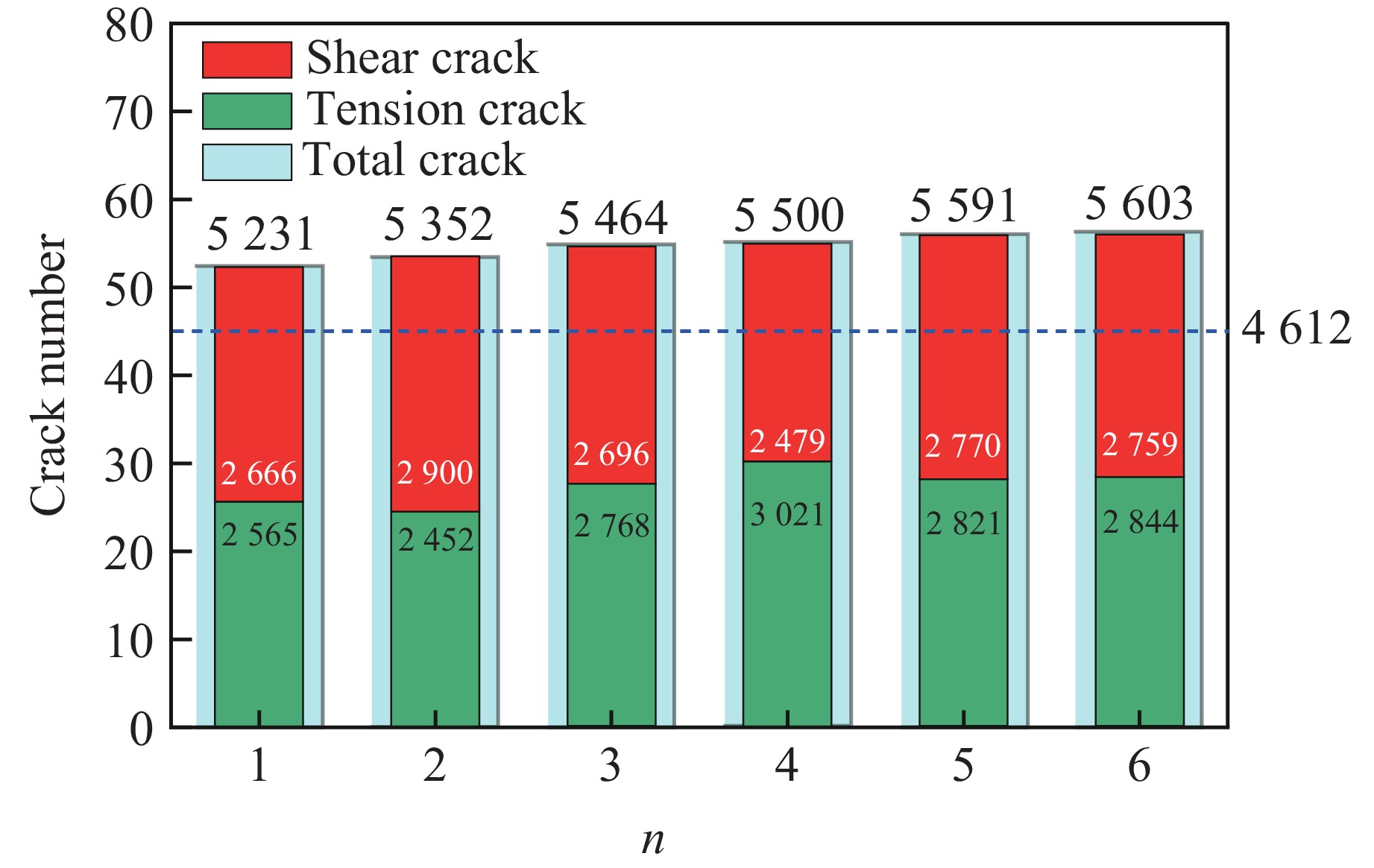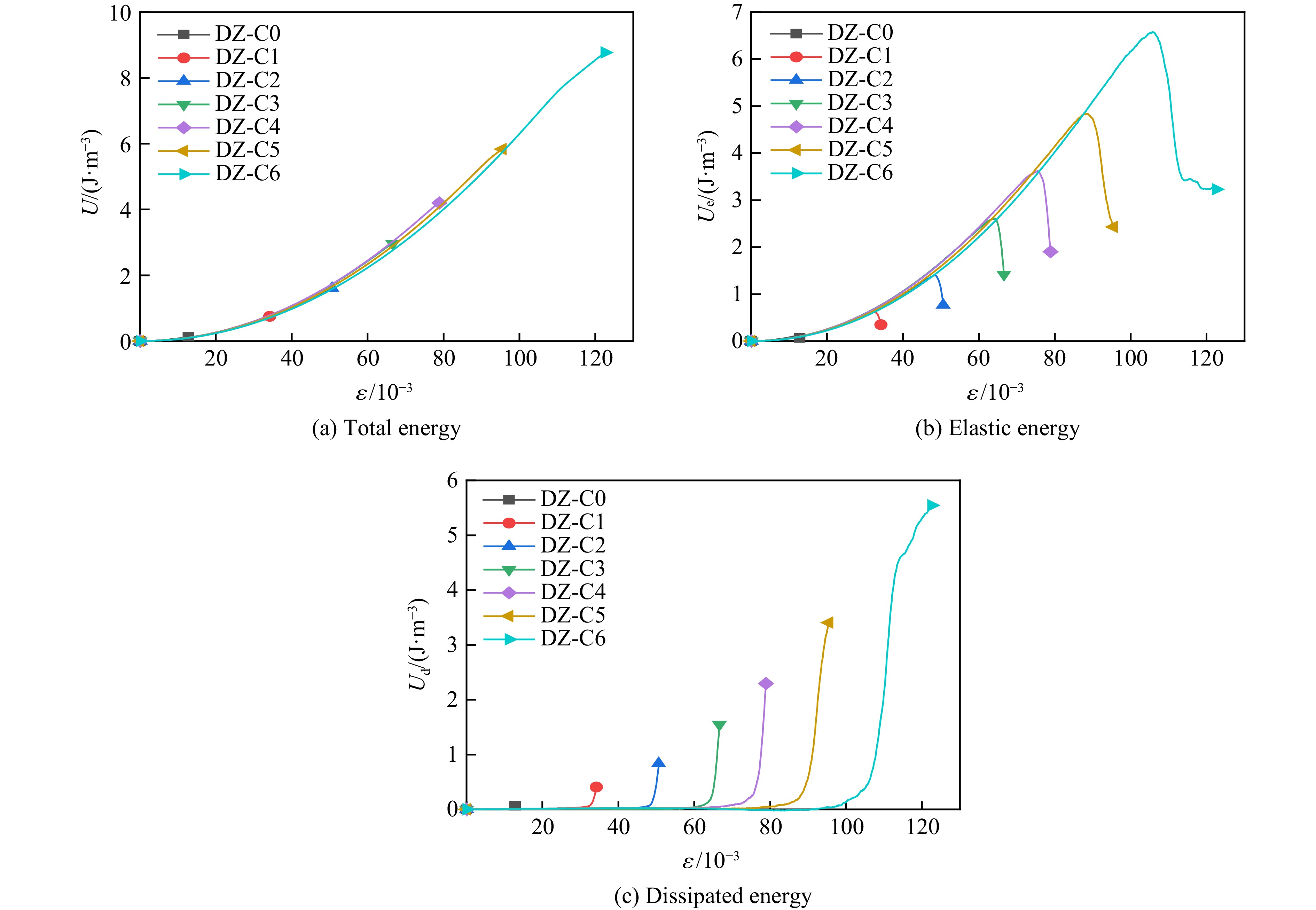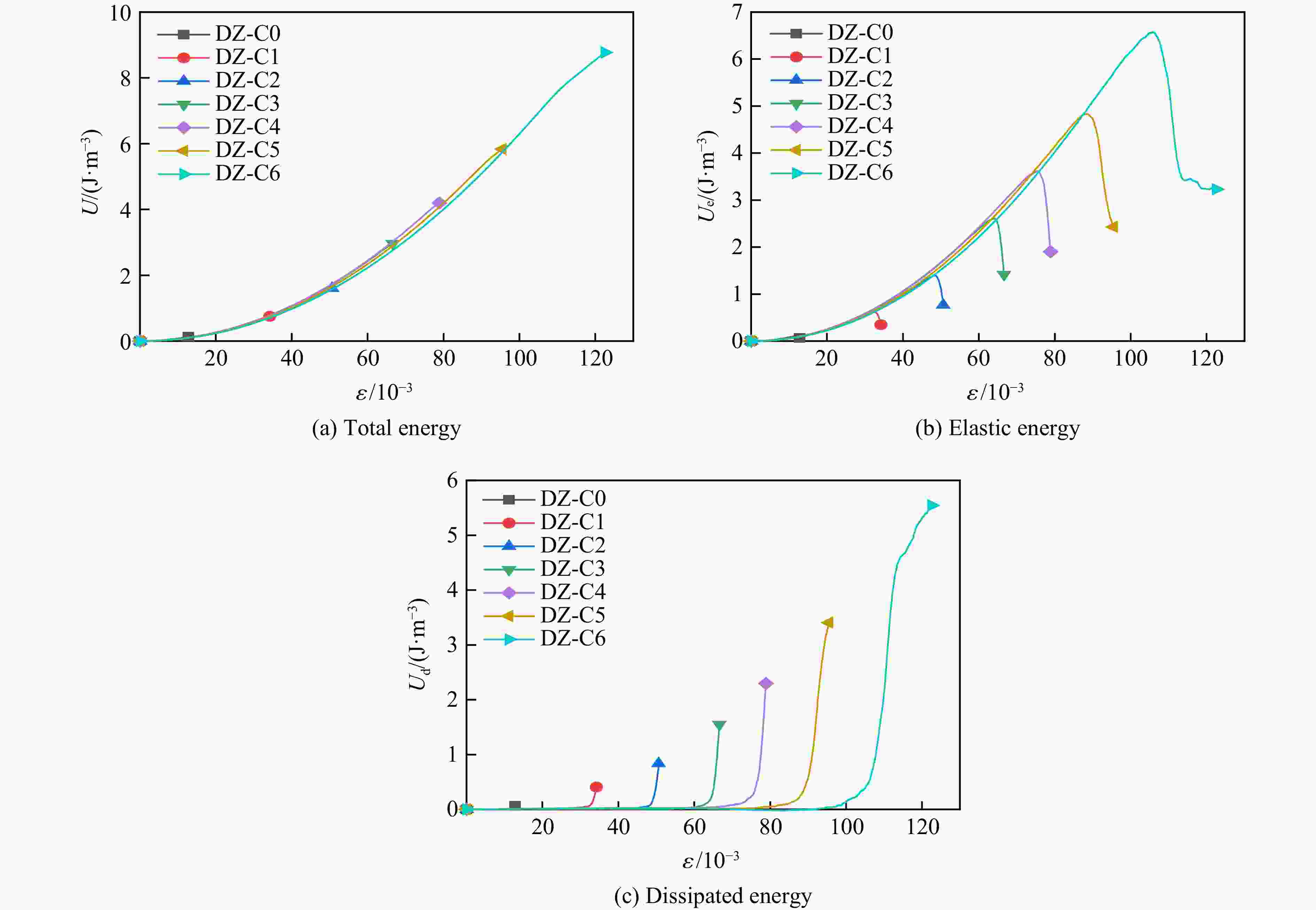 Sample Size/(mm×mm) Layer Number of particles Loading rate/(mm·min−1) DZ-C0–DZ-C6 50×100 0–6 8881 0.12 表 7 不同CFRP布层数下煤圆柱的力学参数