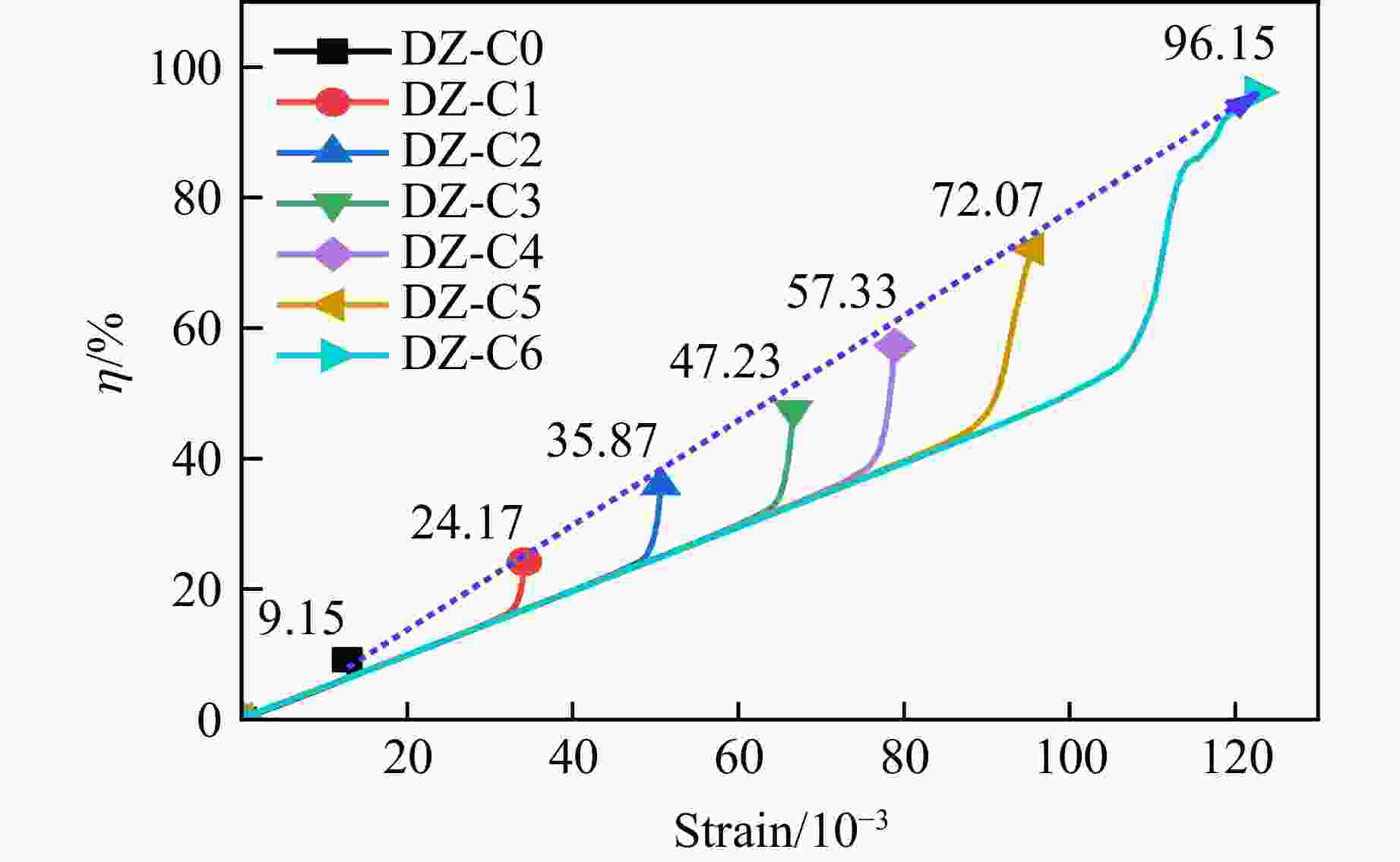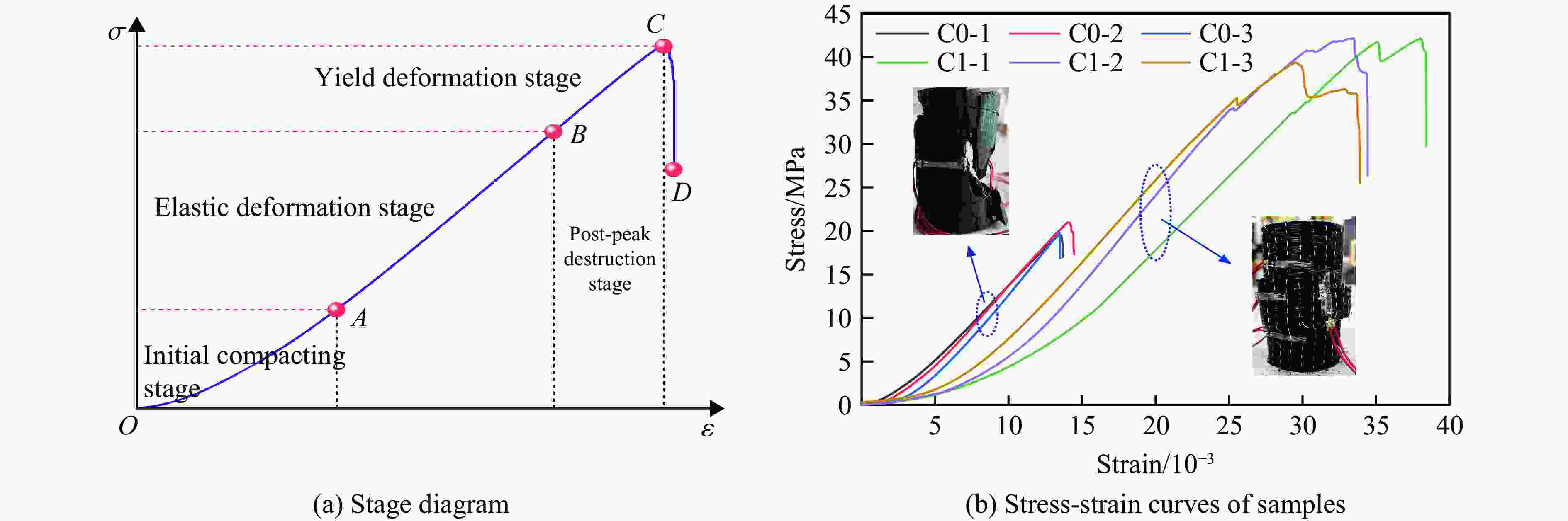 Sample n εp/10−3 σp/MPa E/GPa DZ-C0 0 12.71 20.08311 1.63 DZ-C1 1 33.40 41.63361 1.48 DZ-C2 2 48.31 60.29511 1.30 DZ-C3 3 63.95 84.83669 1.38 DZ-C4 4 75.46 101.03746 1.41 DZ-C5 5 88.68 114.25265 1.35 DZ-C6 6 105.91 130.26486 1.29 表 8 不同CFRP层数煤圆柱的约束刚度及等效厚度