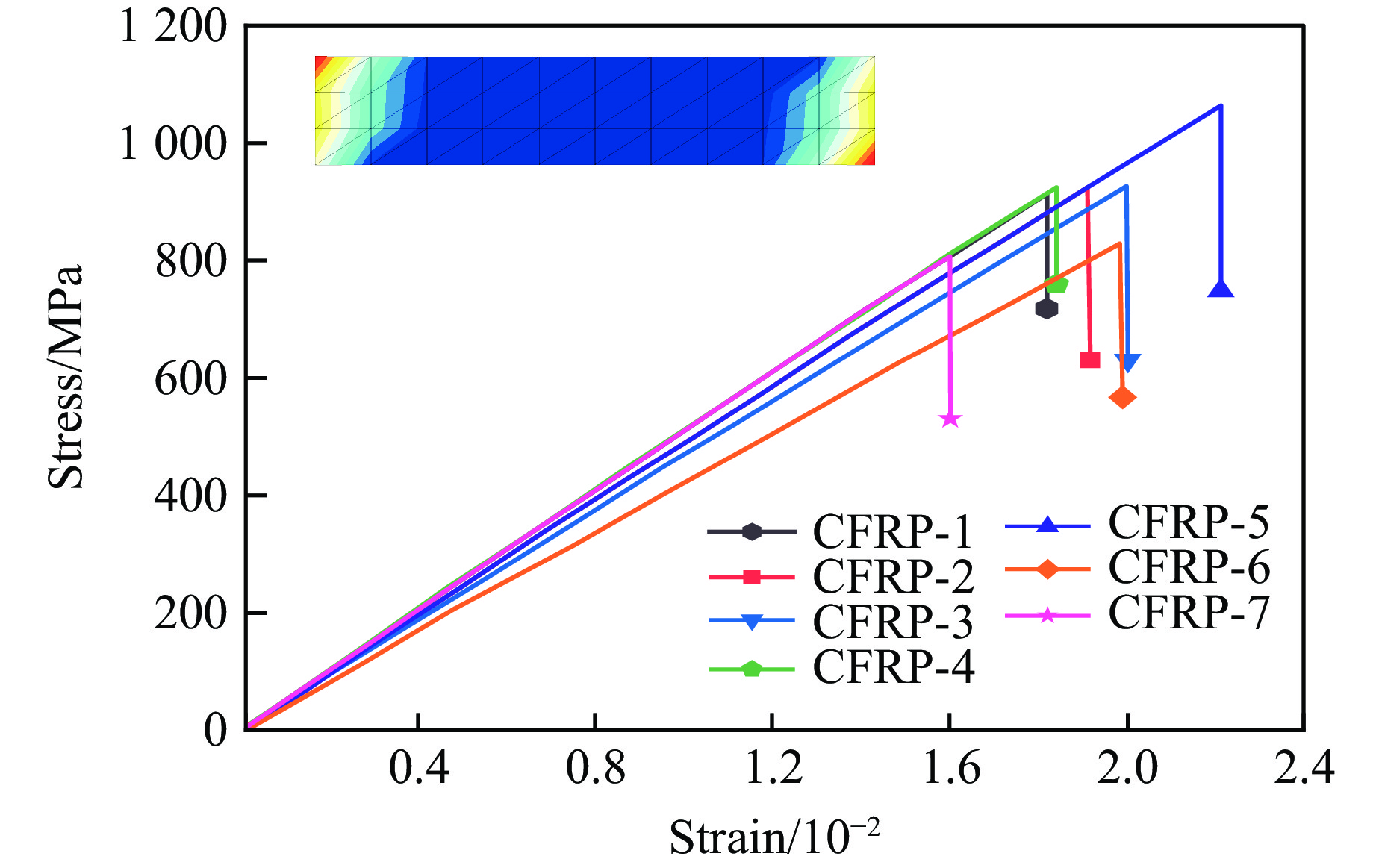 CFRP No. FCFRP/N x/mm εCFRP/% TCFRP/MPa CFRP-1 3846.0 4.71 1.88 921.2 CFRP-2 3880.5 5.19 2.07 929.5 CFRP-3 3889.5 5.18 2.07 931.6 CFRP-4 3877.5 4.57 1.83 928.7 CFRP-5 4462.5 5.35 2.14 1068.9 CFRP-6 3466.5 5.05 2.02 830.3 CFRP-7 3408.0 3.91 1.56 816.3 Average value 3832.9 4.85 1.94 918.1 表 2 单轴压缩试验方案