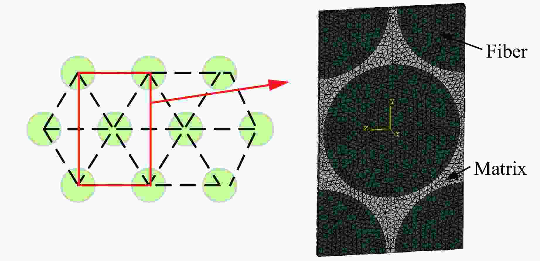 Ef1/GPa Ef2/GPa Ef3/GPa Gf12/GPa μf12 μf13 μf23 Xft/MPa Xfc/MPa 221 13.81 13.81 9 0.27 0.27 0.30 3530 2470 Em/GPa μm Smt/MPa Smc/MPa Sms/MPa 3.55 0.33 80 241 60 表 3 介观RVE模型参数