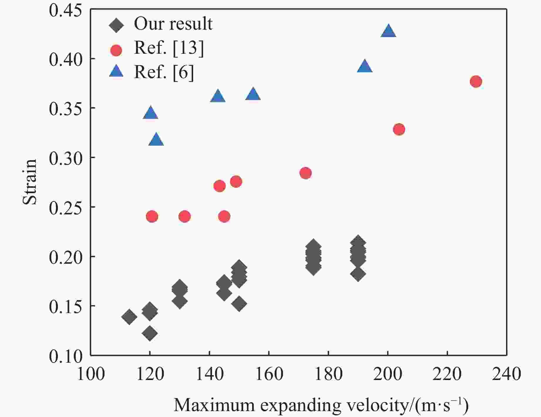 [1] MOTT N F. Fragmentation of shell cases [J]. Proceedings of the Royal Society A: Mathematical, Physical and Engineering Sciences, 1947, 189(1018): 300–308. doi: 10.1098/rspa.1947.0042 [2] GRADY D. Fragmentation of rings and shells: the legacy of N. F. Mott [M]. Berlin, Heidelberg: Springer, 2006. [3] ROBSON J D. Exploring effects of property variation on fragmentation of metal rings using a simple model [J]. Defence Technology, 2023, 23: 1–7. doi: 10.1016/j.dt.2022.08.014 [4] TODINOV M T. Is Weibull distribution the correct model for predicting probability of failure initiated by non-interacting flaws? [J]. International Journal of Solids and Structures, 2009, 46(3/4): 887–901. doi: 10.1016/j.ijsolstr.2008.09.033 [5] NIORDSON F I. A unit for testing materials at high strain rates: by using ring specimens and electromagnetic loading, high strain rates are obtained in a tension test in a homogeneous, uniaxial strain field [J]. Experimental Mechanics, 1965, 5(1): 29–32. doi: 10.1007/BF02320901 [6] ZHANG H, RAVI-CHANDAR K. On the dynamics of necking and fragmentation—Ⅰ. real-time and post-mortem observations in Al 6061-O [J]. International Journal of Fracture, 2006, 142(3): 183–217. doi: 10.1007/s10704-006-9024-7 [7] ZHANG H, RAVI-CHANDAR K. On the dynamics of necking and fragmentation—Ⅱ. effect of material properties, geometrical constraints and absolute size [J]. International Journal of Fracture, 2008, 150(1): 3–36. doi: 10.1007/s10704-008-9233-3 [8] JANISZEWSKI J. Ductility of selected metals under electromagnetic ring test loading conditions [J]. International Journal of Solids and Structures, 2012, 49(7/8): 1001–1008. doi: 10.1016/j.ijsolstr.2012.01.005 [9] DAN J K, GUO Z L, CHEN Y, et al. Preliminary investigations on dynamic fracture of ductile metals by using electromagnetically driven expanding ring [J]. AIP Advances, 2020, 10(10): 105001. doi: 10.1063/5.0016527 [10] JIANG Y, CHEN Y, GUO Z L, et al. Effect of strain rate on ductility of Cu TU1 in electromagnetic ring expansion [J]. International Journal of Impact Engineering, 2024, 184: 104832. doi: 10.1016/j.ijimpeng.2023.104832 [11] BARKER L M, HOLLENBACH R E. Laser interferometer for measuring high velocities of any reflecting surface [J]. Journal of Applied Physics, 1972, 43(11): 4669–4675. doi: 10.1063/1.1660986 [12] STRAND O T, GOOSMAN D R, MARTINEZ C, et al. Compact system for high-speed velocimetry using heterodyne techniques [J]. Review of Scientific Instruments, 2006, 77(8): 083108. doi: 10.1063/1.2336749 [13] ALTYNOVA M, HU X Y, DAEHN G S. Increased ductility in high velocity electromagnetic ring expansion [J]. Metallurgical and Materials Transactions A, 1996, 27(7): 1837–1844. doi: 10.1007/BF02651933 [14] LIU M T, REN G W, FAN C, et al. Experimental and numerical studies on the expanding fracture behavior of an explosively driven 1045 steel cylinder [J]. International Journal of Impact Engineering, 2017, 109: 240–252. doi: 10.1016/j.ijimpeng.2017.07.008 [15] HUANG S, CHEN H Y, ZHANG R, et al. Uncovering the fracture behavior of metallic cylindrical shells under internal explosive loadings via careful design of densely-arranged multi-point photon Doppler velocimetry measurements [J]. International Journal of Impact Engineering, 2023, 180: 104679. doi: 10.1016/j.ijimpeng.2023.104679 [16] ZHANG H, PEI X Y, PENG H, et al. Phase-field modeling of spontaneous shear bands in collapsing thick-walled cylinders [J]. Engineering Fracture Mechanics, 2021, 249: 107706. doi: 10.1016/j.engfracmech.2021.107706 [17] LOVINGER Z, RITTEL D, ROSENBERG Z. Modeling spontaneous adiabatic shear band formation in electro-magnetically collapsing thick-walled cylinders [J]. Mechanics of Materials, 2018, 116: 130–145. doi: 10.1016/j.mechmat.2017.01.010 [18] 邓云飞, 张永, 吴华鹏, 等. 6061-T651铝合金动态力学性能及J-C本构模型的修正 [J]. 机械工程学报, 2020, 56(20): 74–81. doi: 10.3901/JME.2020.20.074DENG Y F, ZHANG Y, WU H P, et al. Dynamic mechanical properties and modification of J-C constitutive model of 6061-T651 aluminum alloy [J]. Journal of Mechanical Engineering, 2020, 56(20): 74–81. doi: 10.3901/JME.2020.20.074 [19] CAI J Z, GRIESBACH C, AHNEN S G, et al. Dynamic hardness evolution in metals from impact induced gradient dislocation density [J]. Acta Materialia, 2023, 249: 118807. doi: 10.1016/j.actamat.2023.118807 -