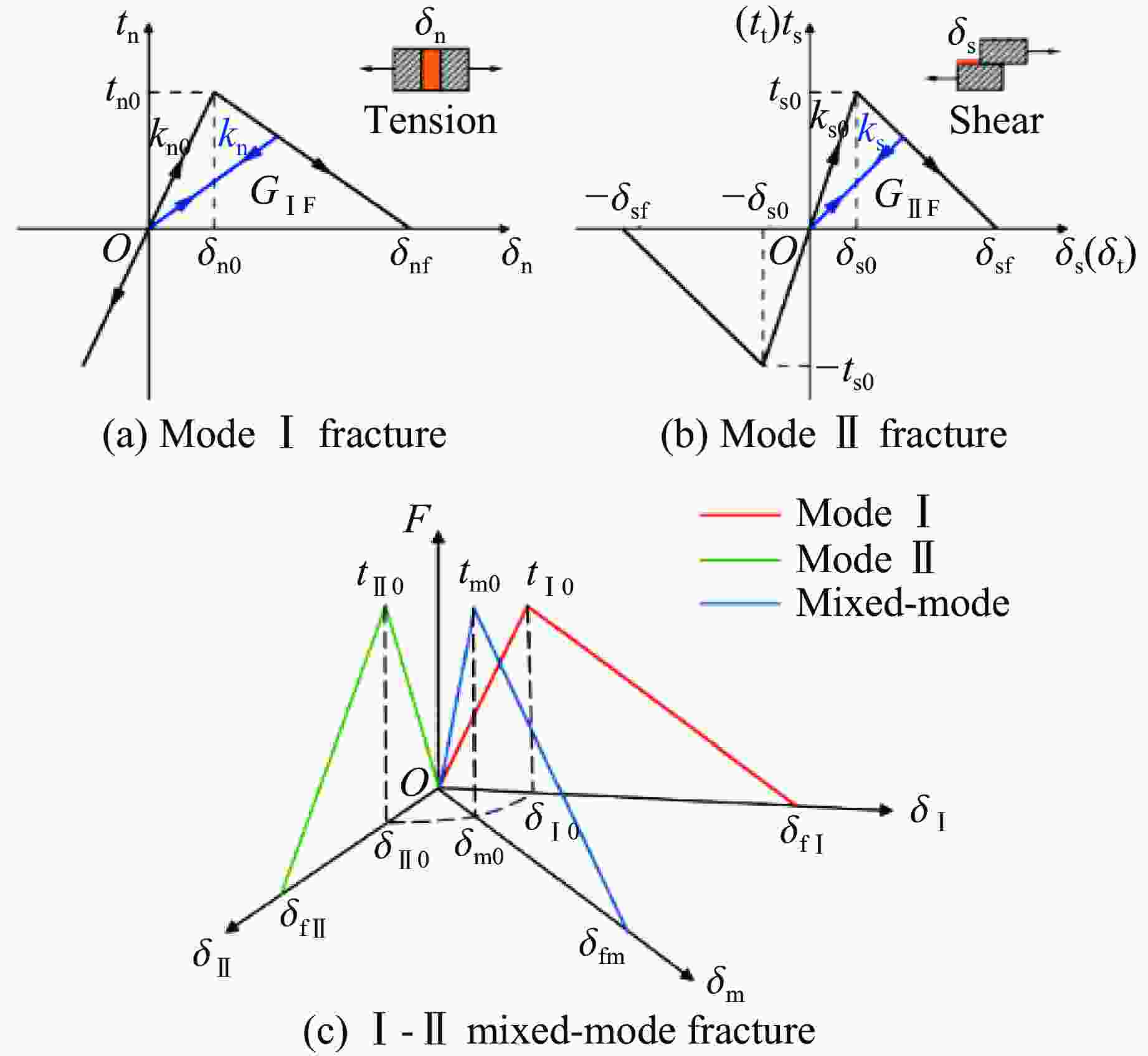 ρ/(g·cm–3) fc/MPa A B N C D1 D2 2.32 32 0.79 1.62 0.61 0.008 0.04 1.00 K1/GPa K2/GPa K3/GPa pc/MPa μc $ {\dot{\varepsilon }}_{0} $/s–1 εf,min Smax 0.85 −1.71 2.08 10.7 7.8×10–4 1.00 0.01 7.00 ρ/(g·cm–3) $ \eta $ GⅠ/(N·m–1) GⅡ/(N·m–1) ET/(N·m–3) EN/(N·m–3) 2.32 −2 56.42 282.13 8.3×1010 8.3×1010 表 7 不同释放高度下圆盘试件的起裂时间