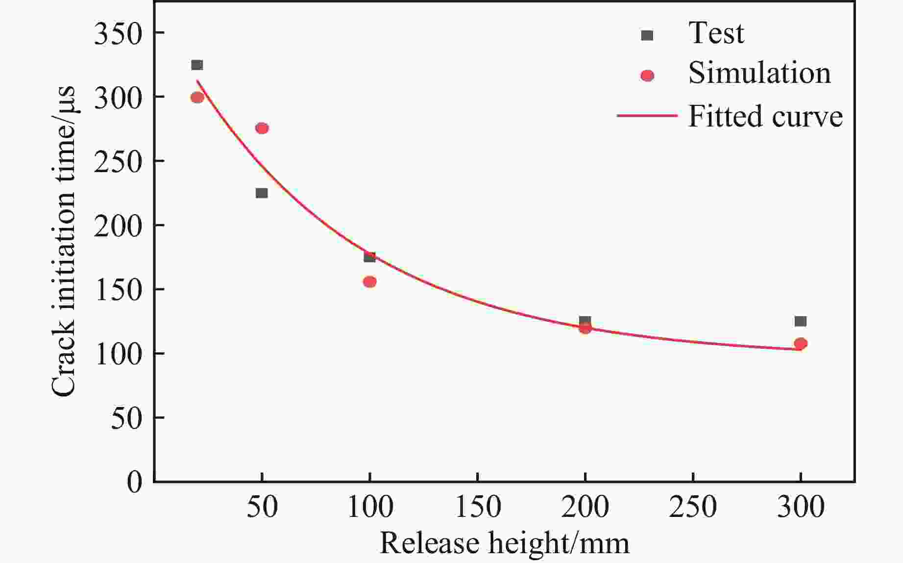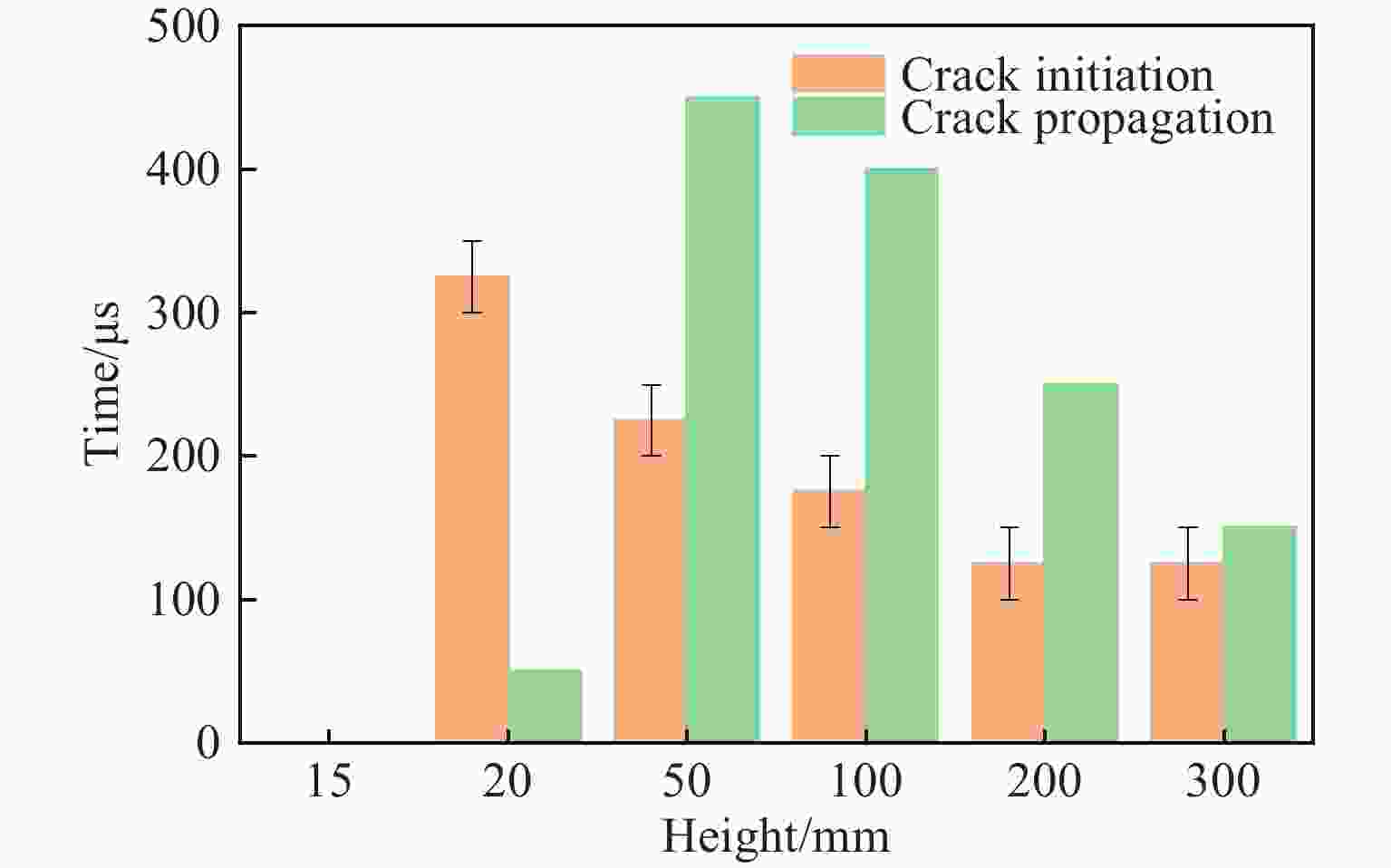 Specimen No. Height/mm Crack initiation time/μs Test results Simulation results H1 300 100–150 108 H2 200 100–150 120 H3 100 150–200 156 H4 50 200–250 276 H5 20 300–350 300 H6 15 0 0 -