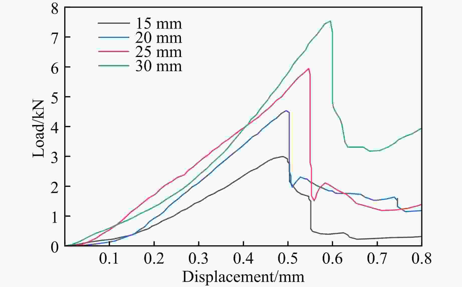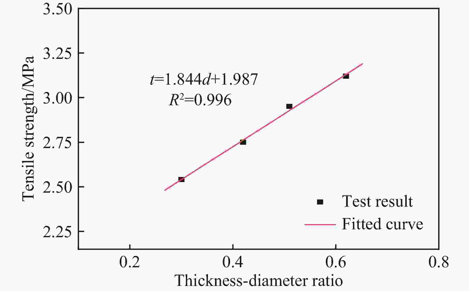 ν ρ/(g·cm–3) E/GPa fc/MPa 0.19 2.32 25.5 32 表 2 不同厚径比试件的极限载荷与抗拉强度