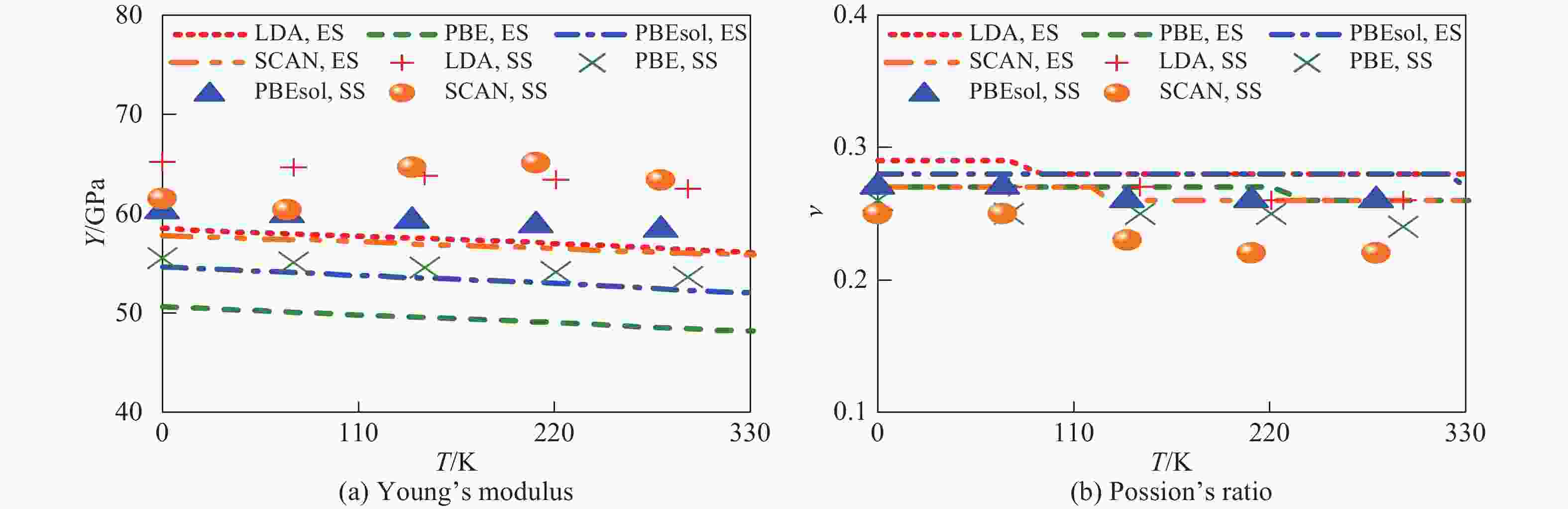 摘要: 金属锡是高压物理领域研究的热点,也是国防科技领域关注的重要材料。锡具有丰富的物相,无论是基础研究,还是工业应用,锡的多相物态方程和相界都至关重要。采用密度泛函理论结合平均场势方法,系统研究了锡的高温高压多相物态方程、相界、弹性模量、声速和Hugoniot线等,获得了高温高压下锡的多相物态方程,计算得到的β-γ相界、β-Sn的常压声速与实验结果吻合较好。此外,进一步研究了不同密度泛函对锡的高温高压物态方程的影响。结果表明:通过局域密度梯度近似(local density approximation,LDA)和PBEsol泛函得到的主Hugoniot线及常压弹性模量与实验结果具有较好的一致性;与其他泛函相比,通过SCAN(strongly constrained and appropriately normed)泛函描述的相界的偏差较大,但描述的β-Sn的常压声速与实验结果更接近。Abstract: Metallic tin is a focal point in high-pressure physics research and a critical material of strategic importance in defense-related technologies. Due to the rich physical phases of tin, it is crucial to study the multiphase equation of state and phase boundaries of tin, whether in basic research or industrial applications. This work systematically investigates the high-temperature and high-pressure multiphase equation of state (EOS), phase boundaries, elastic modulus, sound velocities, and Hugoniot curves of tin using density functional theory (DFT) combined with the mean-field potential (MFP) method. The results not only provide the multiphase EOS of tin under extreme conditions but also demonstrate good agreement with experimental data for the β-γ phase boundary and ambient-pressure sound velocities of β-Sn. Furthermore, this study evaluates the effects of different density functionals (LDA, PBEsol, and SCAN) on the high-pressure EOS. The LDA and PBEsol functionals show superior consistency with experimental Hugoniot curves and ambient-pressure elastic moduli, while the SCAN functional exhibits larger deviations in phase boundary predictions but achieves closer agreement with experimental ambient-pressure sound velocities for β-Sn.