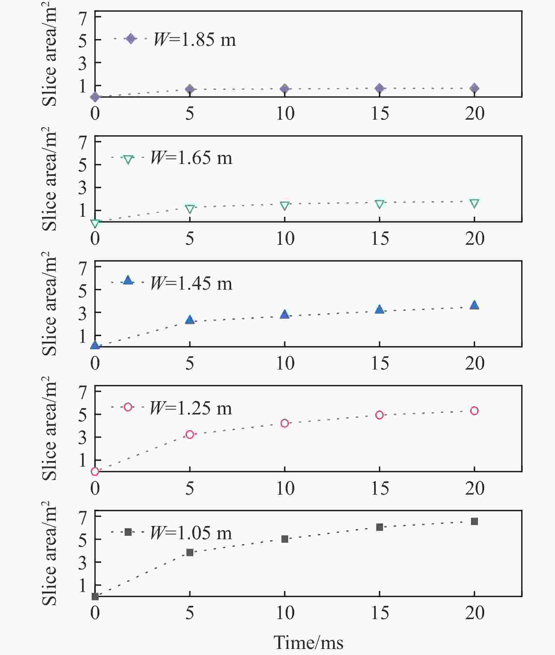 图  不同时刻、不同抵抗线长度下爆腔切片面积