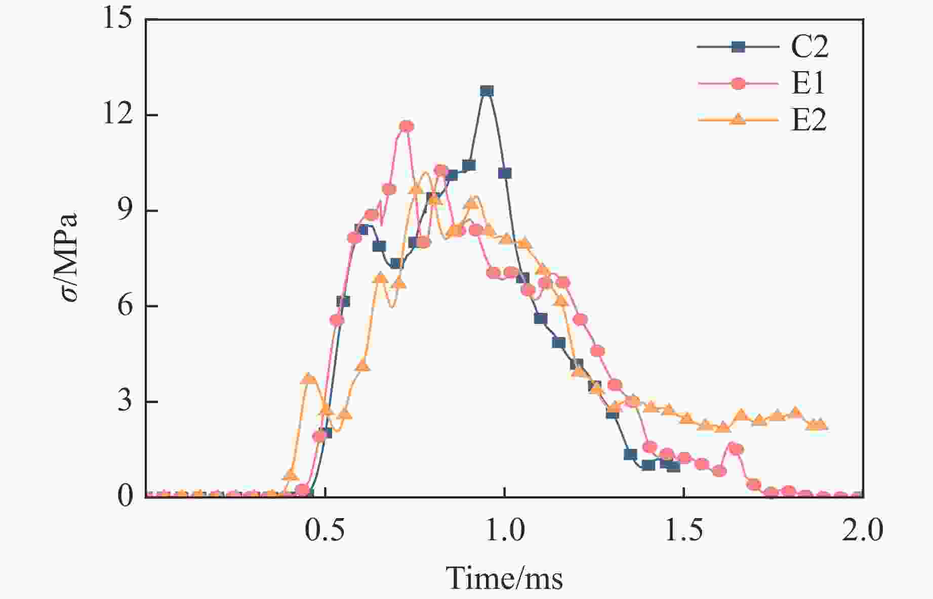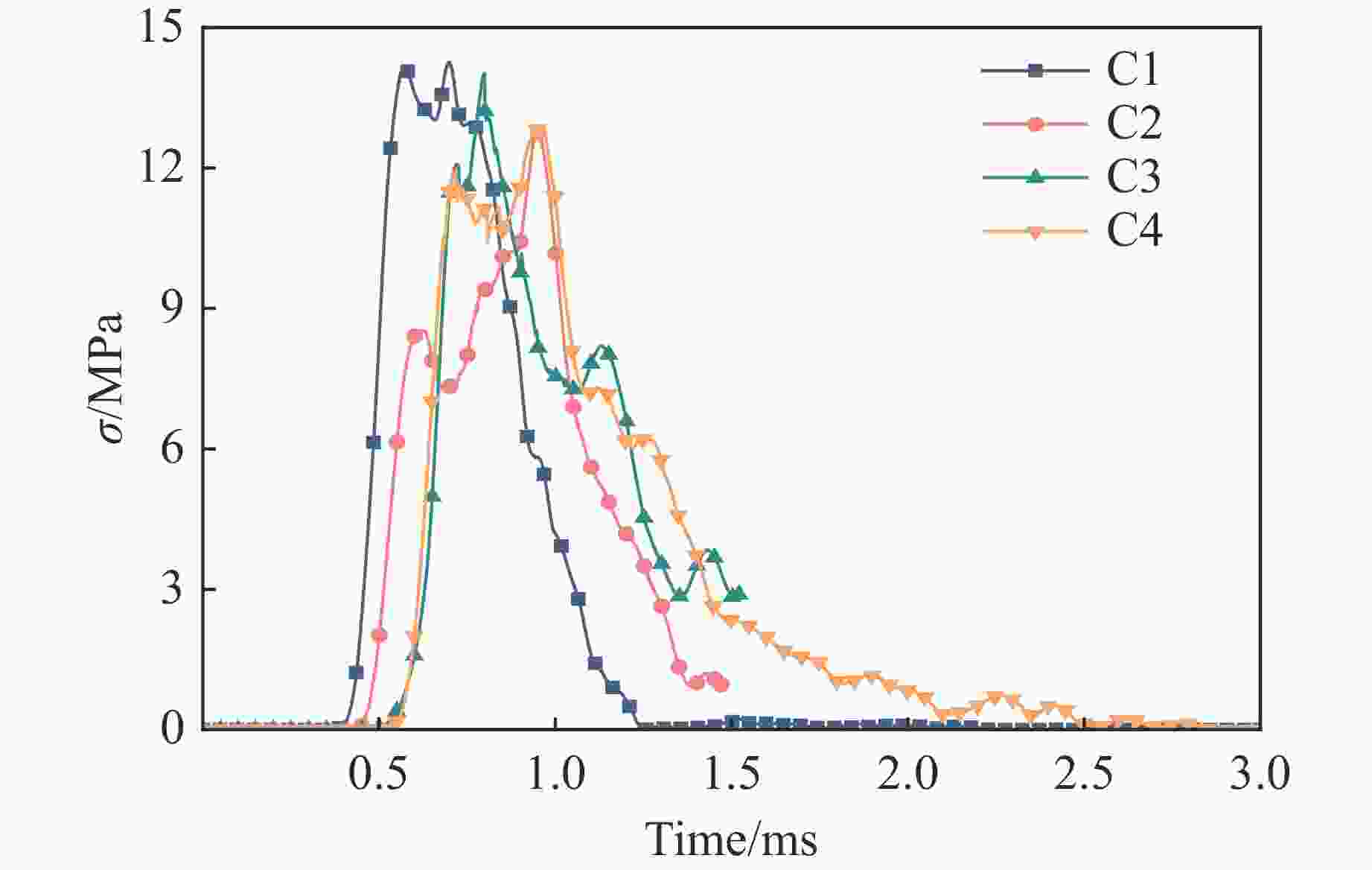 图  24  不同空间排布工况下背弹面墙体的应力时程曲线