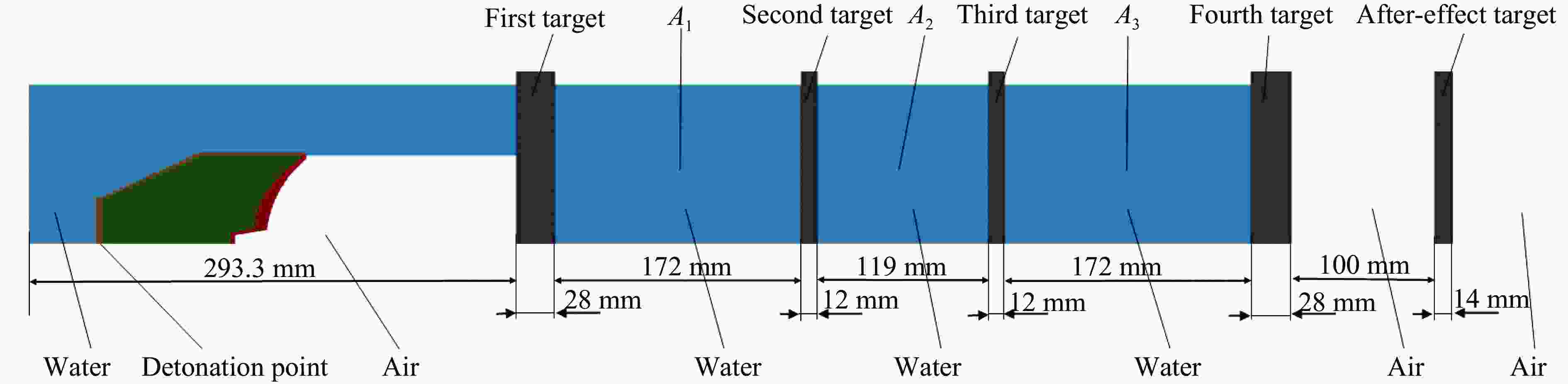 ρ/(g·cm−3) C0/(km·s−1) S01 S02 S03 ωm Ea/MPa V0 1.25×10−3 3.440 0 0 0 1.4 0.25 0 表 4 水介质材料参数